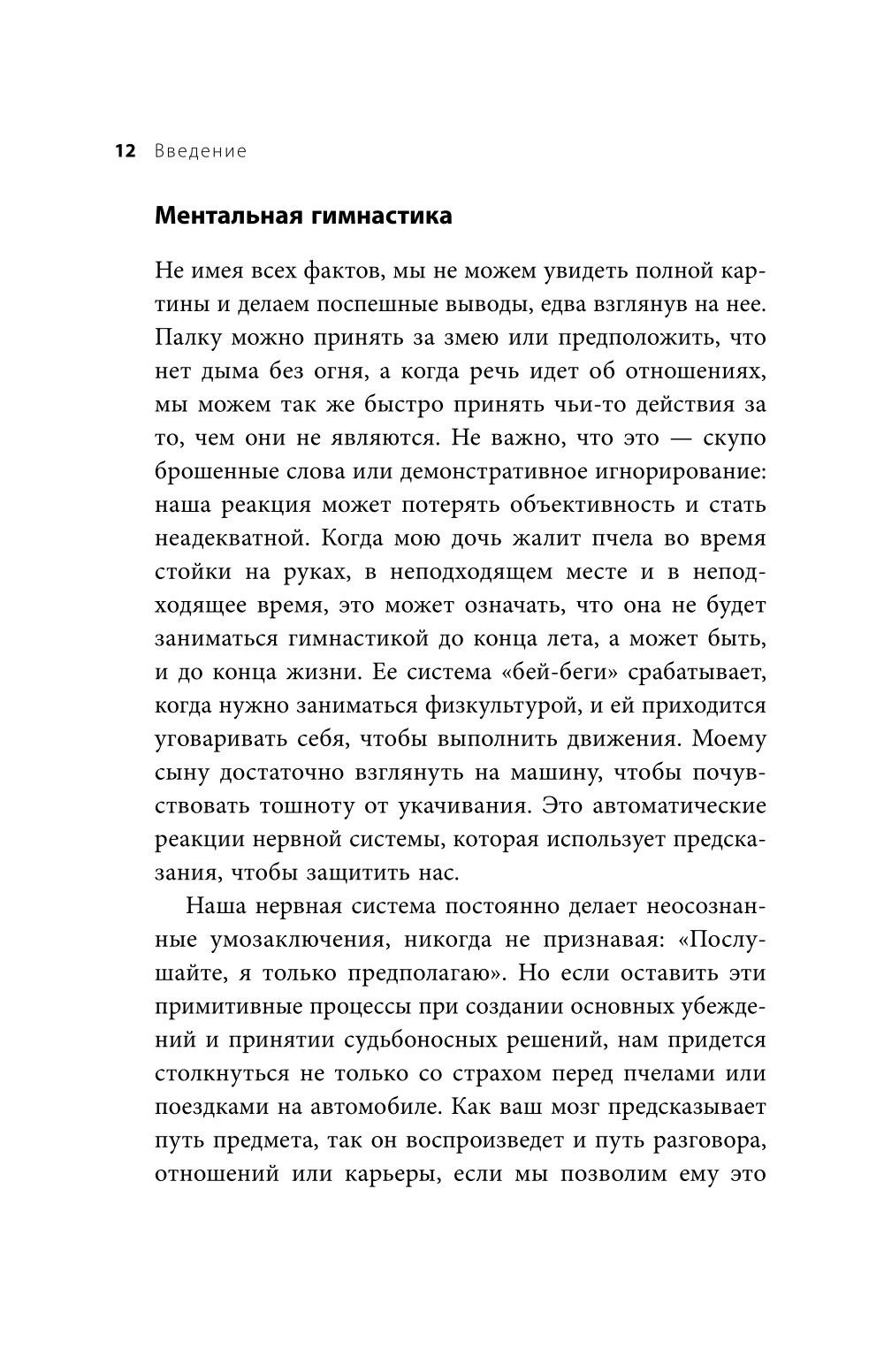 Вы когда-нибудь чувствовали себя неудобно после разговора с родственником или приятелем и все никак не могли понять, почему вам так неприятно? За 15 лет практики Эмма Таррелл обнаружила, что истоки этого замешательства часто кроются в слепом пятне: пробеле в осознании, который искажает наше восприятие себя и своих близких. Мы чувствуем себя нелюбимыми, неуверенными или подавленными и сами не понимаем, почему. Автор этой книги Эмма Таррелл предлагает узнать свой тип восприятия и успешно скомпенсировать его, просто взглянув иначе на то, как вы обычно взаимодействуете с людьми и с собой. Может быть, вы Мост - самый лучший друг, который никому не может сказать «нет»? Или Скала - лишенный собственных границ стоик? Гладиатор - целеустремленный, но подозрительный достигатор? А может, Ловкач - неспособный проявить себя очаровашка? Словно герой волшебной страны Оз, вы обретете личные границы, уверенность, волю и осмелитесь довериться людям. В этой книге: - Вы пройдете тест для проверки психологического зрения. - Найдете советы, на что стоит обратить внимание в семейных, дружеских и романтических отношениях, на работе в соответствии со своим типом. - Разрешите внутренний конфликт, который заставляет вас наступать на одни и те же грабли. - Перестанете испытывать токсичный стыд за любые свои проявления. «Я дам вам ответы на вопросы, о которых вы даже не подозревали. Например, почему потеря одобрения людей часто является ценой, которую стоит заплатить, если вы Ловкач. Как стремление быть хорошим может быть как благословением, так и проклятием, если вы Скала. Когда достижение того, что вы хотите, не станет лучшим результатом, если вы Гладиатор. И почему не всегда «хорошо быть хорошим», если вы Мост».| Издательство | Эксмо |