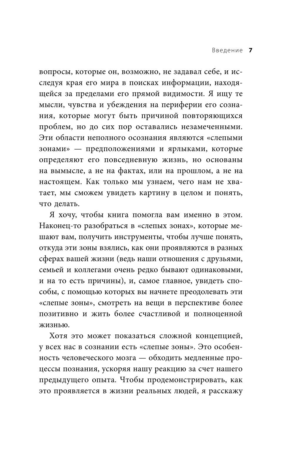 Аннотация: Эффект слепого пятна. Вырвись из внутренних установок, которые запрещают заботиться о себе, доверять другим и делать то, что хочется