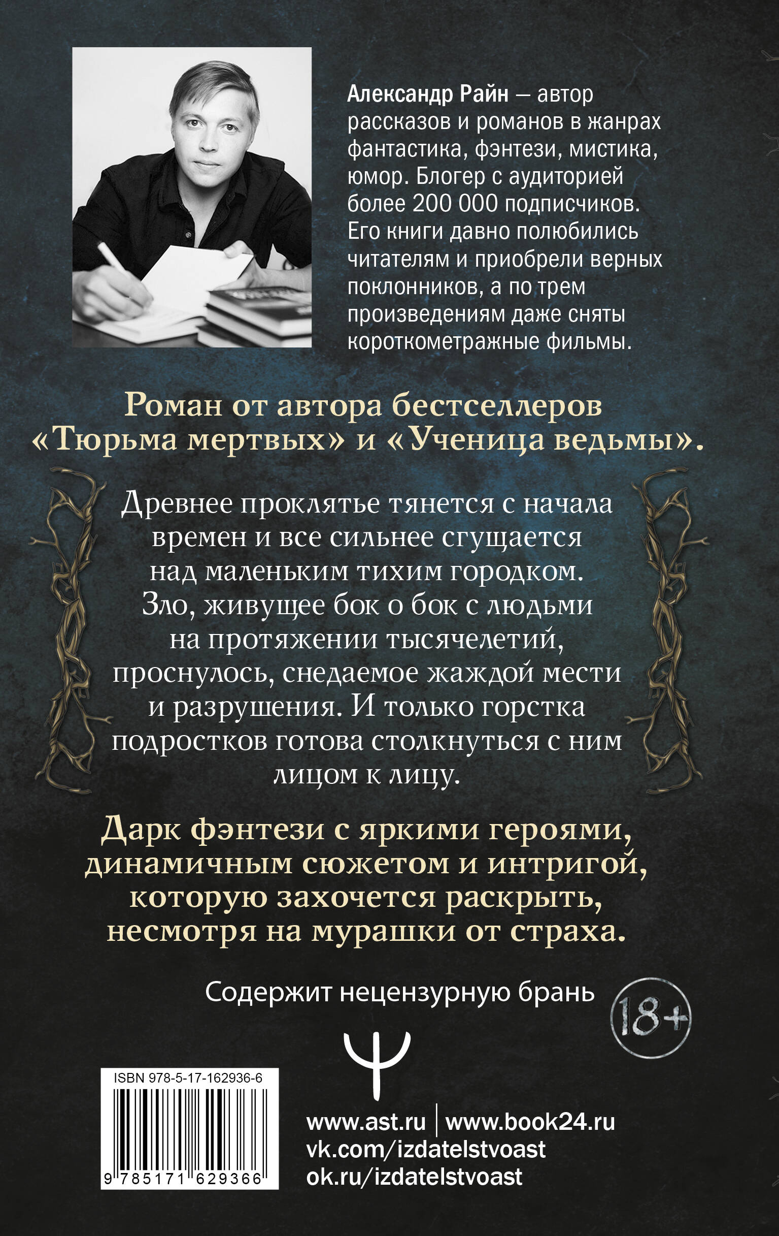 Сможет ли группа подростков остановить Древнее Зло? Что, если обычный засор в раковине откроет портал в дикий лес, где все деревья, реки, болота и земля - живые? У леса есть сердце и душа, и совершенно четкое желание - выдавить из своего пространства человека… Добро пожаловать в фантастический мир, созданный писателем Александром Райном. Творчество Александра Райна знакомо многим по его рассказам и романам, ставшим бестселлерами: «Душевный разговор», «До мурашек», «Ученица ведьмы», «Тюрьма мертвых». В новом романе «Эхо проклятого леса» Александр Райн экспериментирует с жанрами дарк-фэнтези и янг-эдалт, делая группу подростков главными героями в жестоком мире взрослых. Буквально с первых страниц в реальный мир врываются посланники мира потустороннего - мощные корни деревьев протискиваются через канализацию и похищают свою первую жертву - десятилетнюю Агату. Зачем пробудилось древнее Зло? Кто стоит за серией таинственных исчезновений подростков? И кто на самом деле представляет большую угрозу - разъяренный лес или человек, варварски пытающийся подчинить себе мир живой природы? Разгадайте мистическую головоломку вместе с героями нового романа Александра Райна.| Издательство | Издательство "АСТ" |