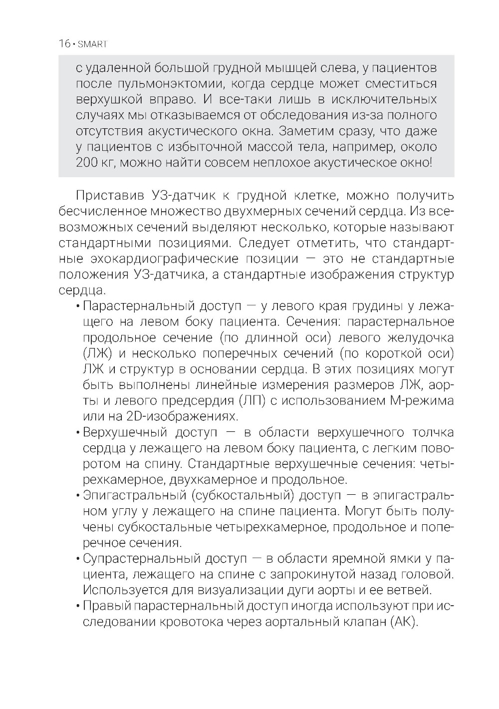 Серия SMART - новое поколение изданий для практикующих врачей. Каждая нозология или метод включает описание патогенеза, нозологического профиля, протоколы лечения и ссылки на Кохрановские обзоры. Эта книга, как и первое издание, адресована специалистам, осваивающим методику ультразвукового исследования сердца и крупных сосудов "с нуля". Книга дополнена описанием методики ультразвукового исследования легких, более новой иособенно актуальной всовременных условиях. Практические указания позволят научиться визуализировать сердце и легкие. Руководство содержит краткое описание ультразвуковых признаков наиболее часто встречающихся во врачебной практике увзрослых болезней сердца исосудов. Усвоению материала способствуют иллюстрации: фотографии исхемы, помогающие понять основные диагностические алгоритмы, а также таблицы (в том числе ультразвуковых признаков патологии легких). Каждая глава содержит задания для самопроверки, позволяющие понять, насколько хорошо усвоен материал. Издание предназначено врачам функциональной и ультразвуковой диагностики, кардиологам, врачам общей практики, атакже может быть использовано в качестве учебного пособия для студентов медицинских вузов.| Издательство | ГЭОТАР-Медиа |