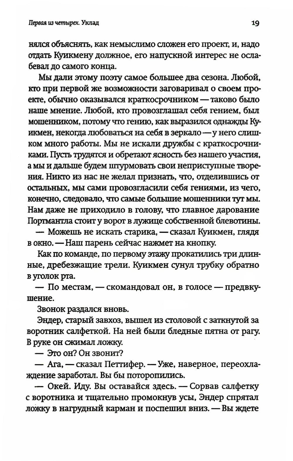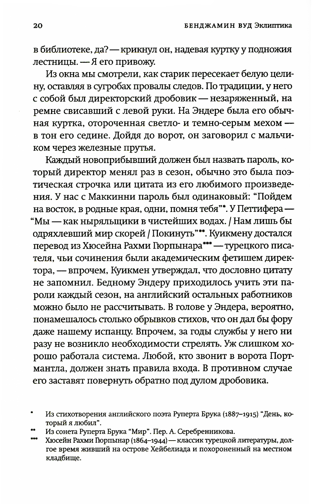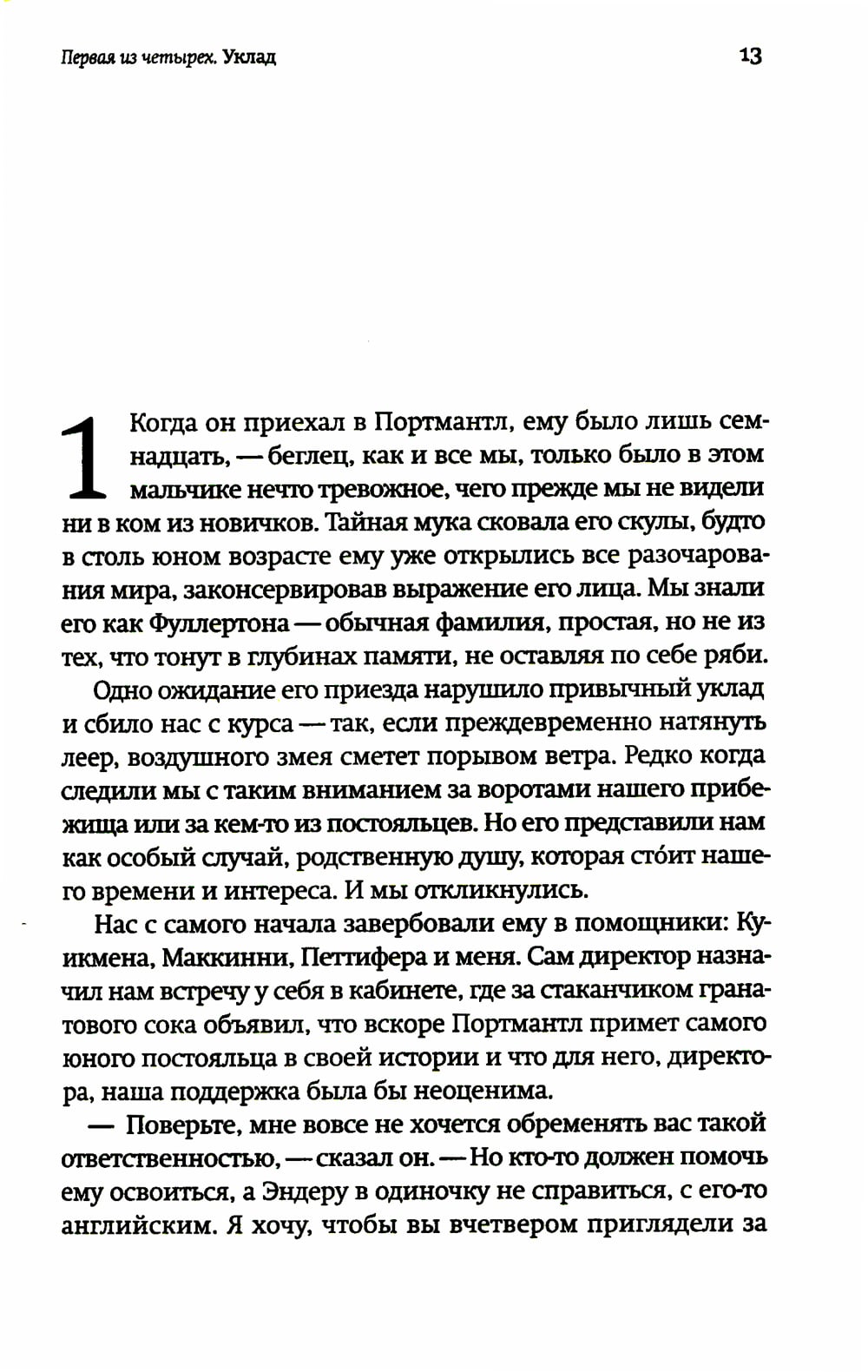На живописном острове неподалеку от Стамбула среди сосен и гранатовых деревьев спряталось тайное прибежище для художников всех мастей: живописцев, архитекторов, писателей, музыкантов. Сюда приезжают за утраченным вдохновением, тишиной и покоем. Шотландская художница Элспет Конрой, известная на острове как Нелл, покинула артсцену Лондона шестидесятых, потеряв веру в себя. В прибежище она живет уже много лет, ночами напролет экспериментируя с пигментами в поисках идеальной краски для своего будущего шедевра. Привычный уклад жизни на острове нарушает появление нового постояльца - семнадцатилетнего Фуллертона. Нелл подозревает, что мальчику угрожает опасность, и хочет ему помочь, но для этого надо выяснить, чем вызваны его ночные кошмары, почему он сбежал из Англии и над чем работает у себя в мастерской. Тонкий, увлекательный, совершенно непредсказуемый роман о природе творчества, о призраках, которые преследуют нас, о том, что все самое прекрасное и ужасное мы носим с собой.| Издательство | Фантом Пресс |