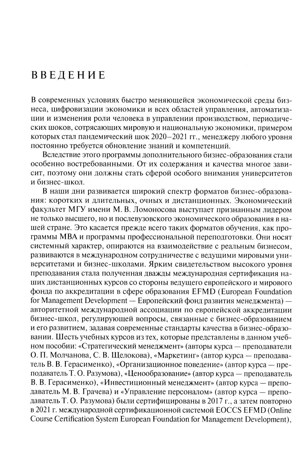 Содержит базовую информацию и практические задания по ключевым курсам программ бизнес-образования с присвоением квалификации МВА по направлениям «Стратегический менеджмент и предпринимательство», «Стратегический маркетинг» и «Финансовый менеджмент», а также для программ профессиональной переподготовки «Экономика и управление» экономического факультета МГУ имени М. В. Ломоносова. Пособие помогает сформировать систему базовых современных знаний в сфере экономических и управленческих дисциплин. Для преподавателей и слушателей программ повышения квалификации и профессиональной переподготовки, а также всех специалистов в сфере экономики и управления, которые стремятся обновить и повысить уровень своих профессиональных знаний.