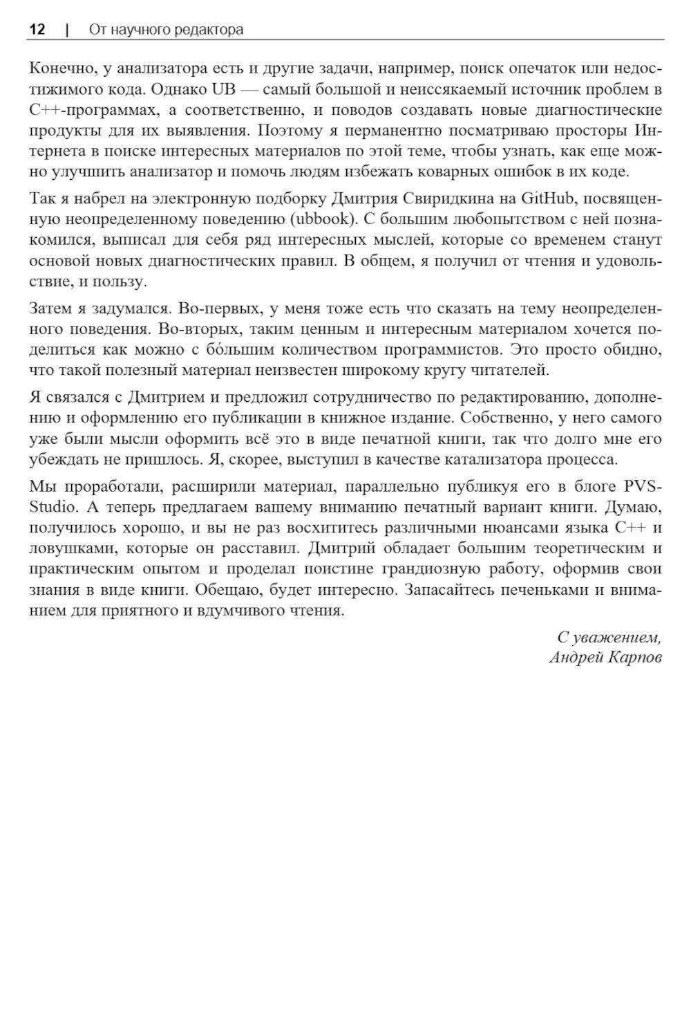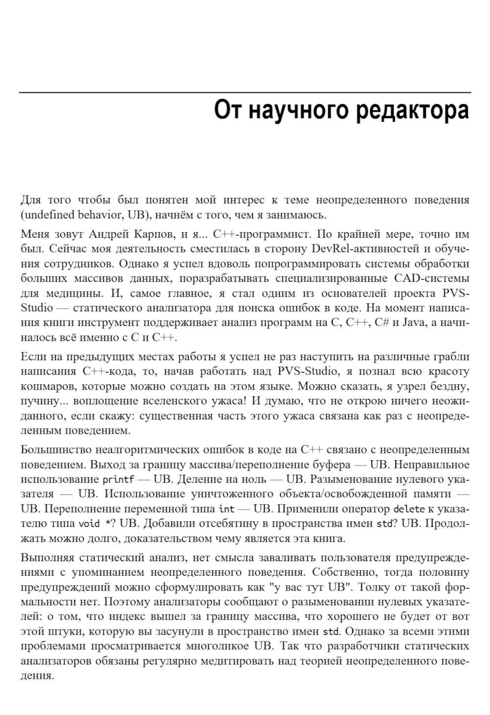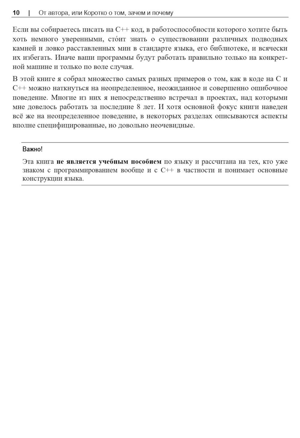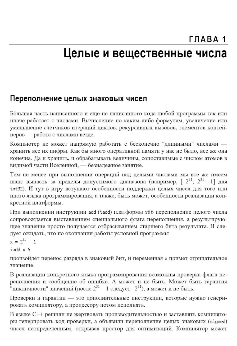 Книга представляет собой обширный справочник типичных, а также очень редко встречающихся ошибок, характерных для программ на C++, Rust и других языках для низкоуровневого и системного программирования, в частности на ассемблере. Все рассмотренные проблемы так или иначе связаны с неопределенным, неуточненным и определяемым реализацией поведением языковых конструкций. Наибольшее внимание уделено неопределенному поведению, возможным признакам его присутствия в программах и методам поиска, диагностики и устранения такого поведения.| Издательство | BHV(БХВ) |
