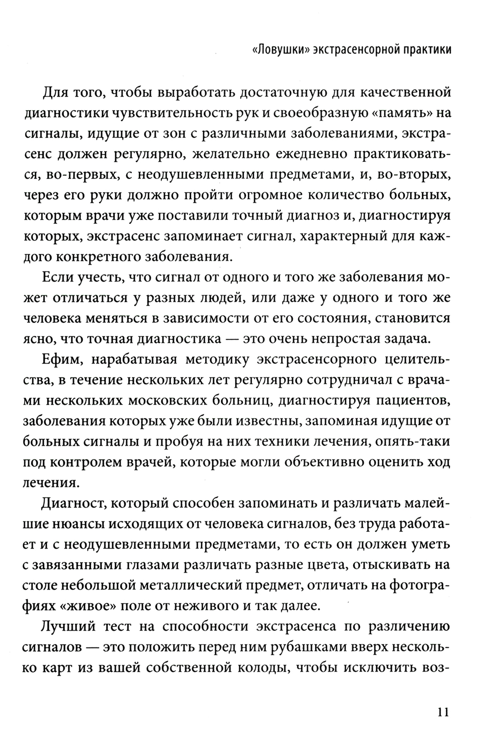 Данная книга посвящена описанию основных методов экстрасенсорной диагностики болезней и их лечения. Многие из помещённых в книгу методов разработаны в московской лаборатории парапсихологии ещё в советское время. Также авторы приводят созданные и опробированные ими способы экстрасенсорного воздействия на объекты окружающего мира, включая некоторые техники «Шоу-Дао». Издание может быть полезным всем, кто интересуется экстрасенсорикой и нетрадиционными способами оздоровления. Данная книга не является учебником по медицине; все рекомендации, приведенные в ней, следует использовать только после согласования с лечащим врачом.| Издательство | Амрита-Русь |