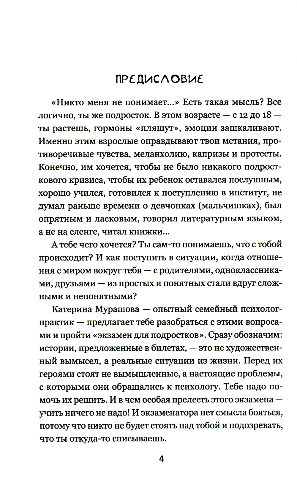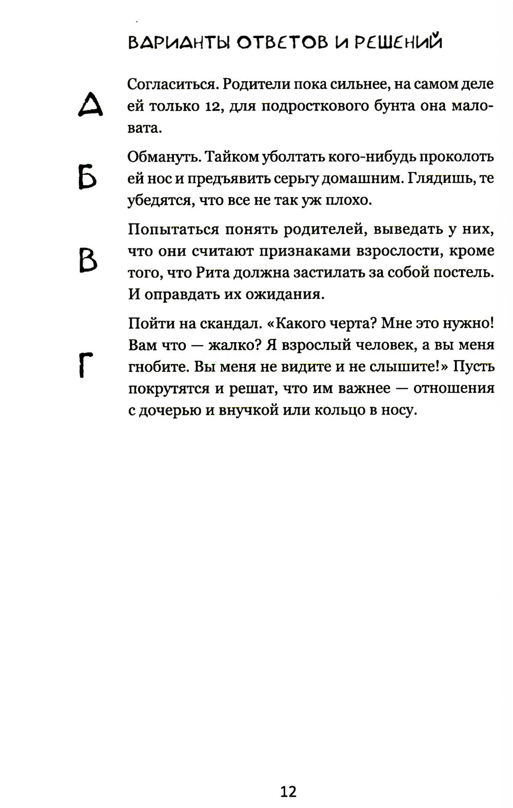 «Экзамен для подростков» - это игра-тренажер для тех, кому от 12 и до 18. Она увлекает и захватывает, и в ней не страшно проиграть - ведь ошибки никому не навредят. А напротив, позволят критически оценить свои навыки взаимоотношений с друзьями, родителями, одноклассниками, учителями и, возможно, даже что-то исправить. Книга состоит из 45 вопросов-историй, которые помогут подростку выработать умение принимать правильное решение в ситуации нравственного выбора.| Издательство | Дискурс |