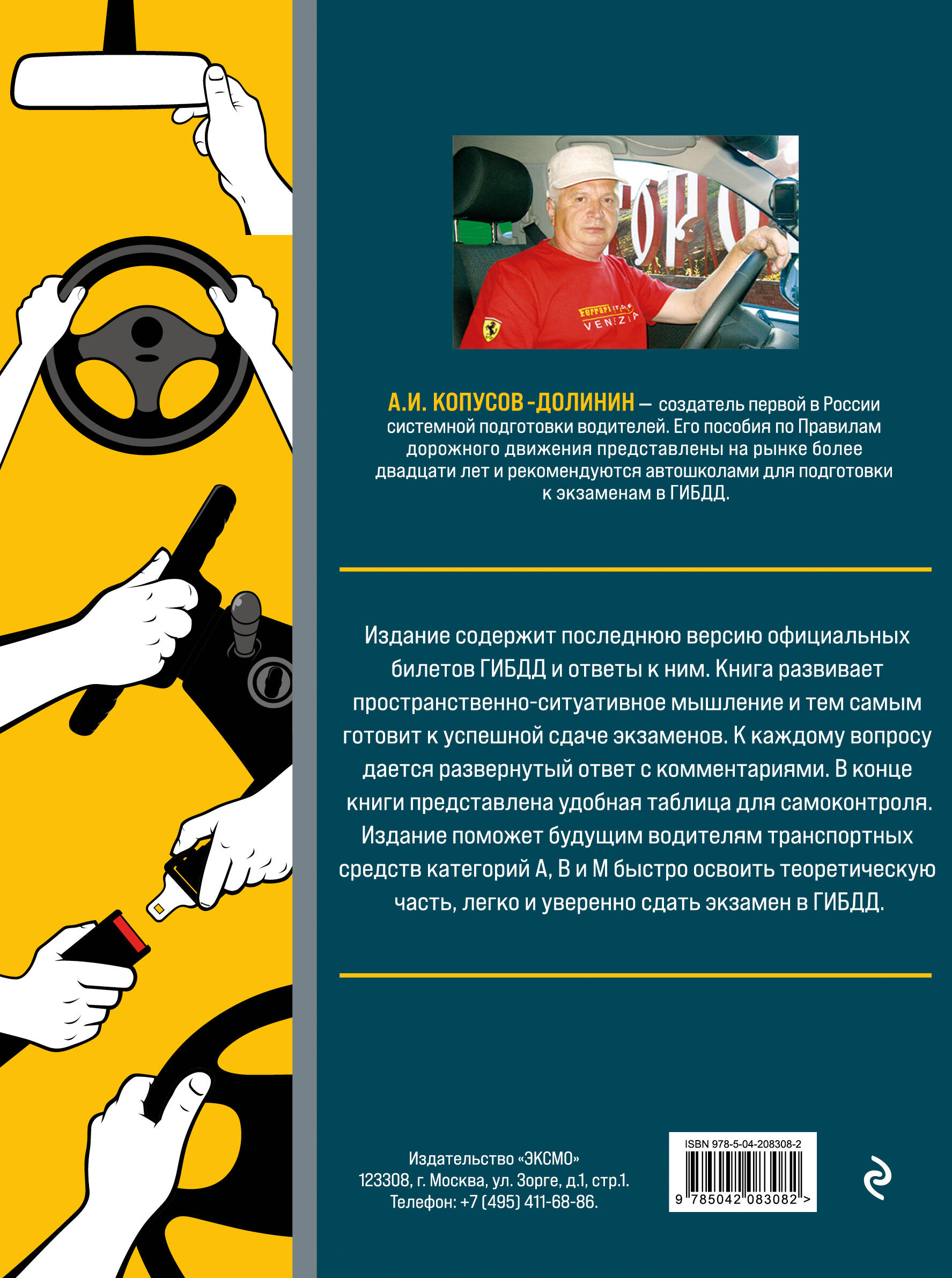 Издание содержит последнюю версию официальных билетов ГИБДД и ответы к ним. Книга развивает пространственно-ситуативное мышление и тем самым готовит к успешной сдаче экзаменов. К каждому вопросу дается развернутый ответ с комментариями. В конце книги представлена удобная таблица для самоконтроля. Издание поможет будущим водителям транспортных средств категорий А, В и М быстро освоить теоретическую часть, легко и уверенно сдать экзамен в ГИБДД. Автор книги - создатель первой в России системной методики подготовки водителей. Его пособия по Правилам дорожного движения представлены на рынке более двадцати лет и рекомендуются автошколами для подговки к экзаменам в ГИБДД.| Издательство | ООО "Издательство "Эксмо" |
