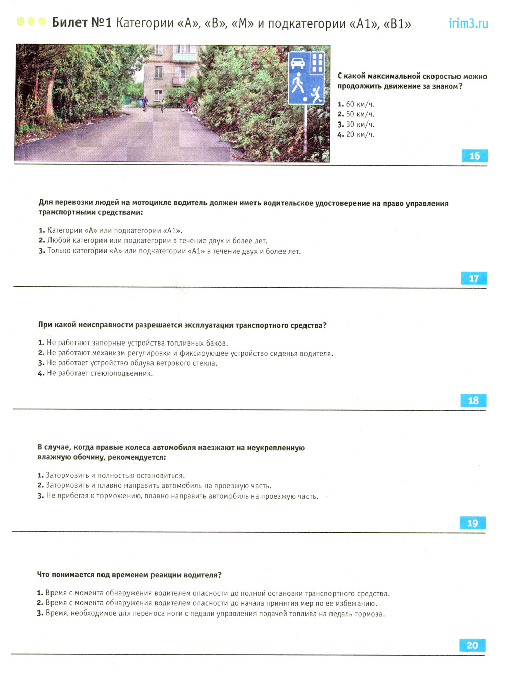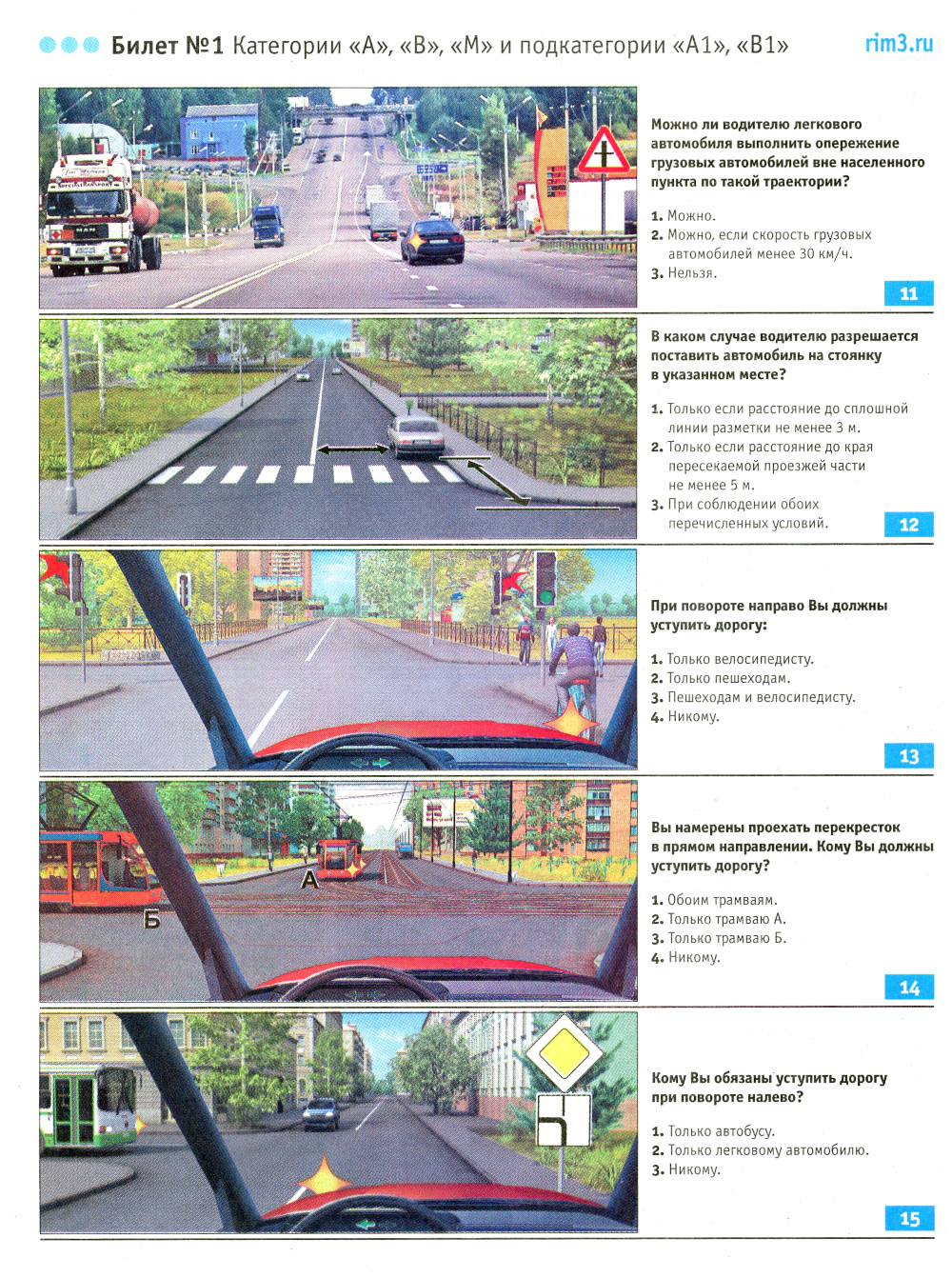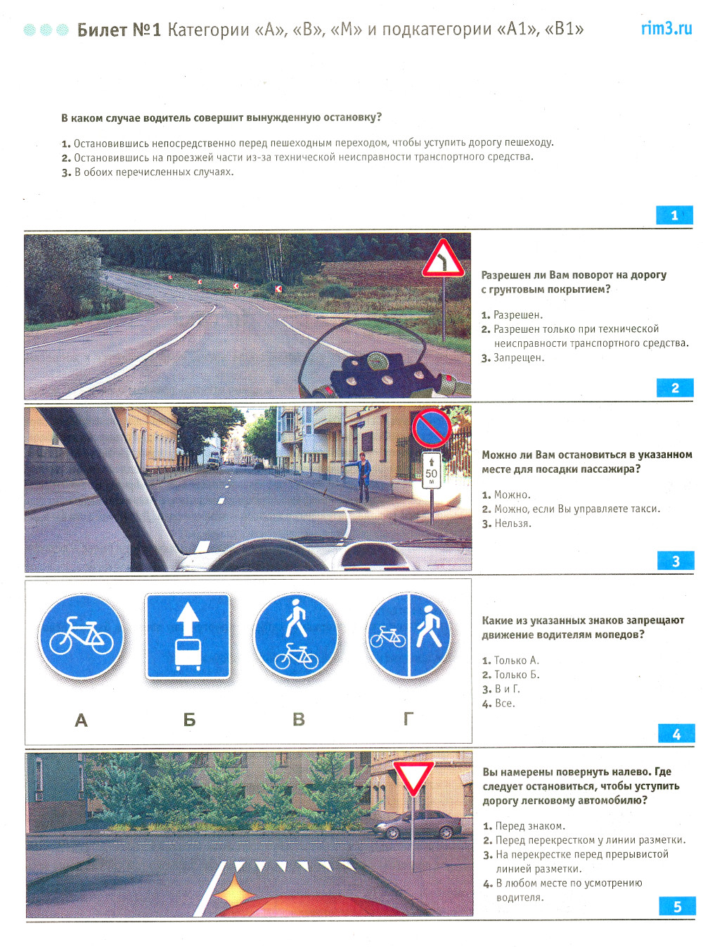 Экзаменационные билеты для приема теоретических экзаменов на право управления транспортными средствами категорий А, В, М и подкатегорий А1, В1 с комм