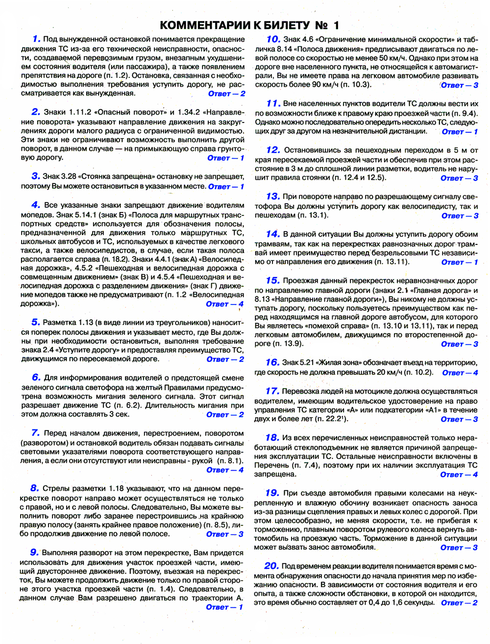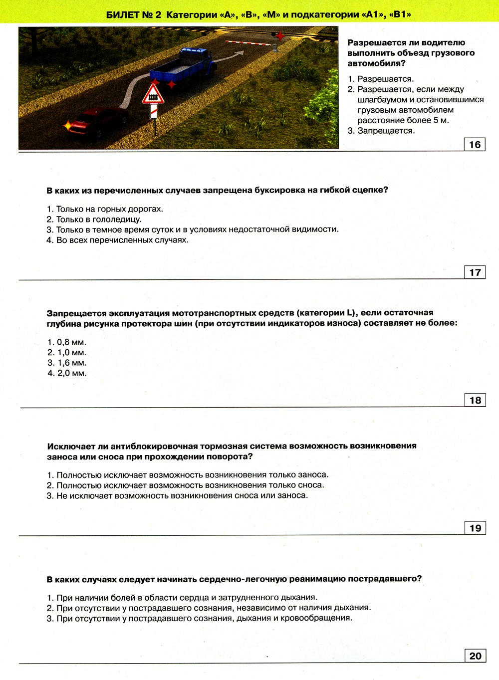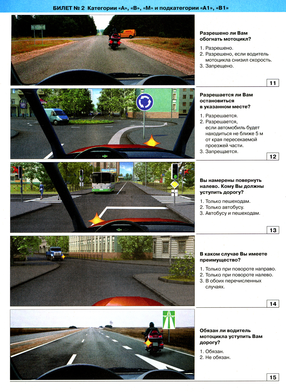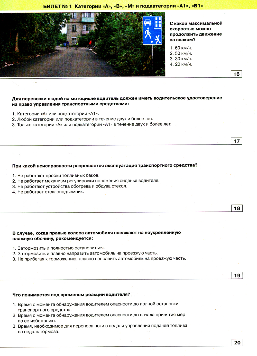 Экзаменационные билеты для приема теоретических экзаменов на право управления транспортными средствами категории "A","B","М" и подкатегорий " A1","B1"