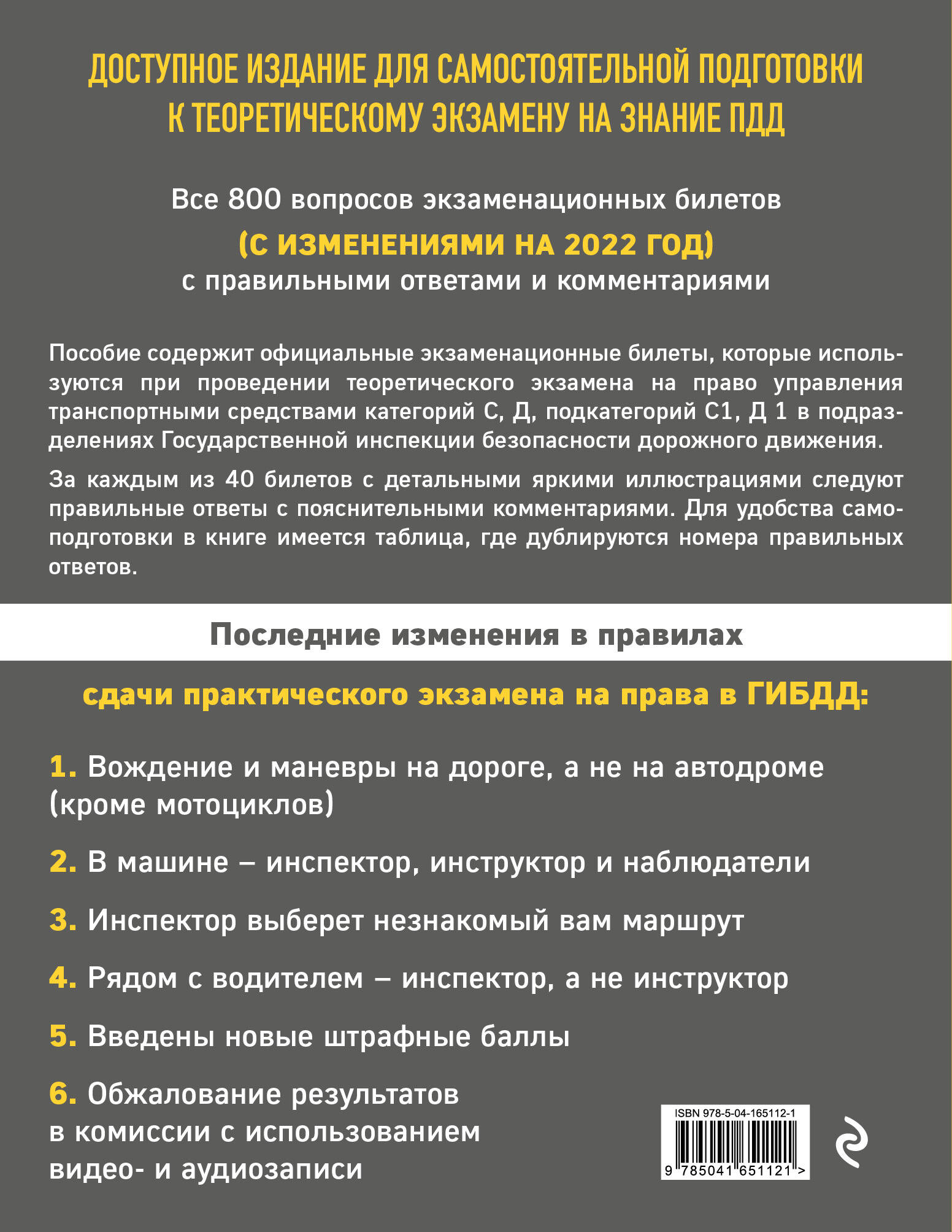 Аннотация: Экзаменационные билеты для сдачи экзаменов на права категорий C и D подкатегорий C1 D1 с комментариями на 2022 год.