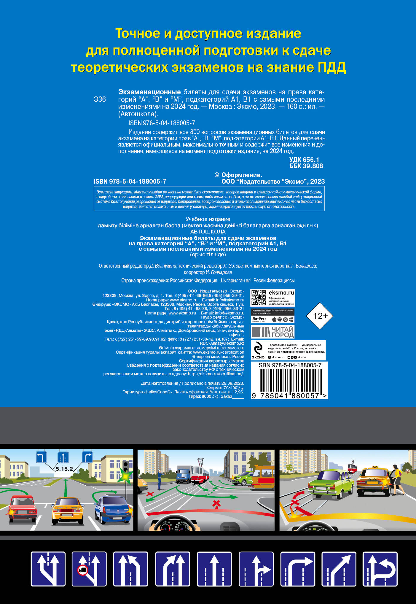 Издание содержит все 800 вопросов экзаменационных билетов для сдачи экзамена на категории прав "А", "В" "M", подкатегории A1, B1. Данный перечень является официальным, максимально точным и содержит все изменения и дополнения, имеющиеся на момент подготовки издания, на 2024 год.| Издательство | ООО "Издательство "Эксмо" |