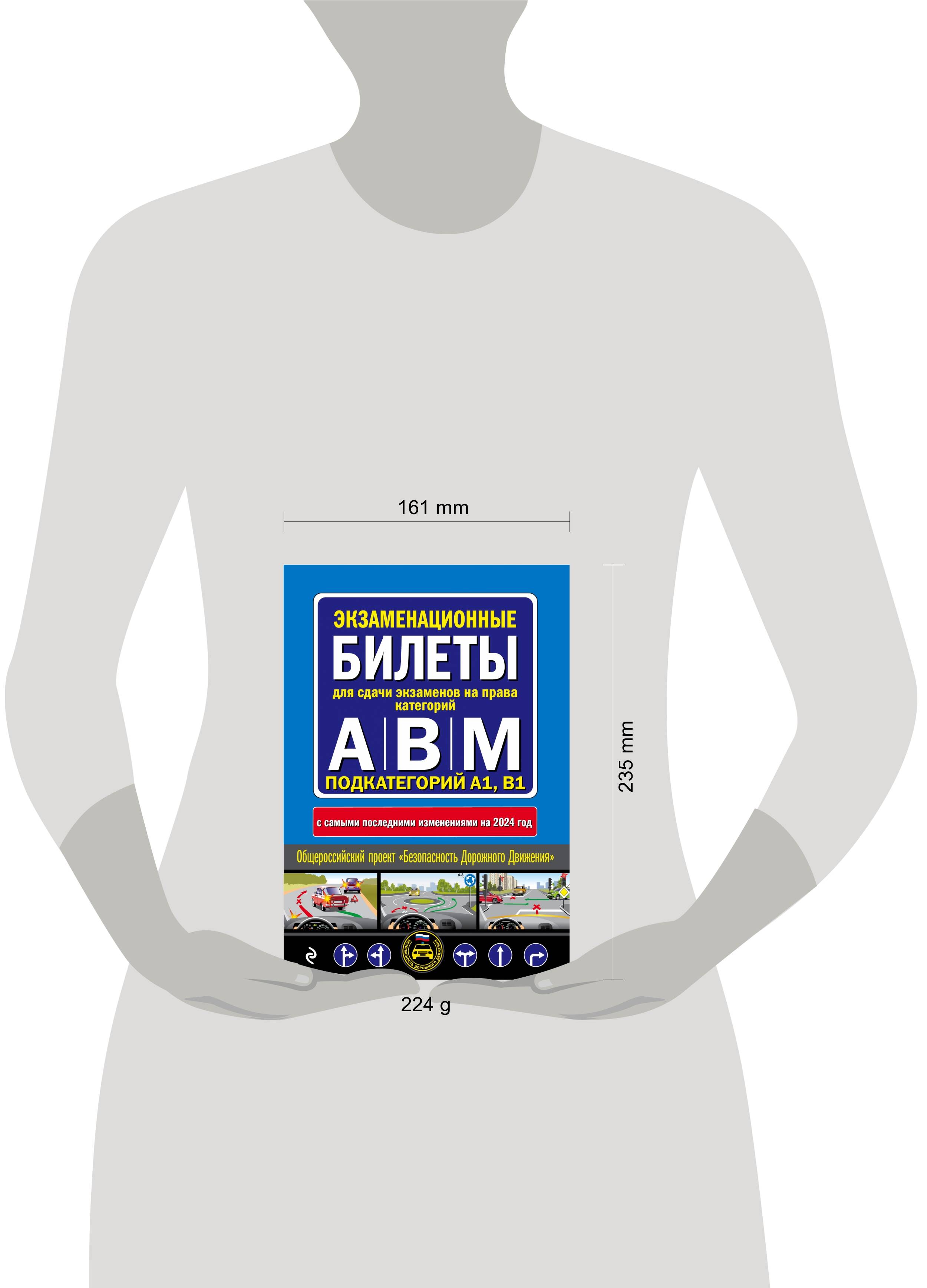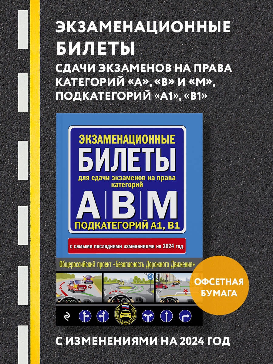 Аннотация: Экзаменационные билеты для сдачи экзаменов на права категорий "А", "В" и "M", подкатегорий A1, B1 (с изм. на 2024 год)