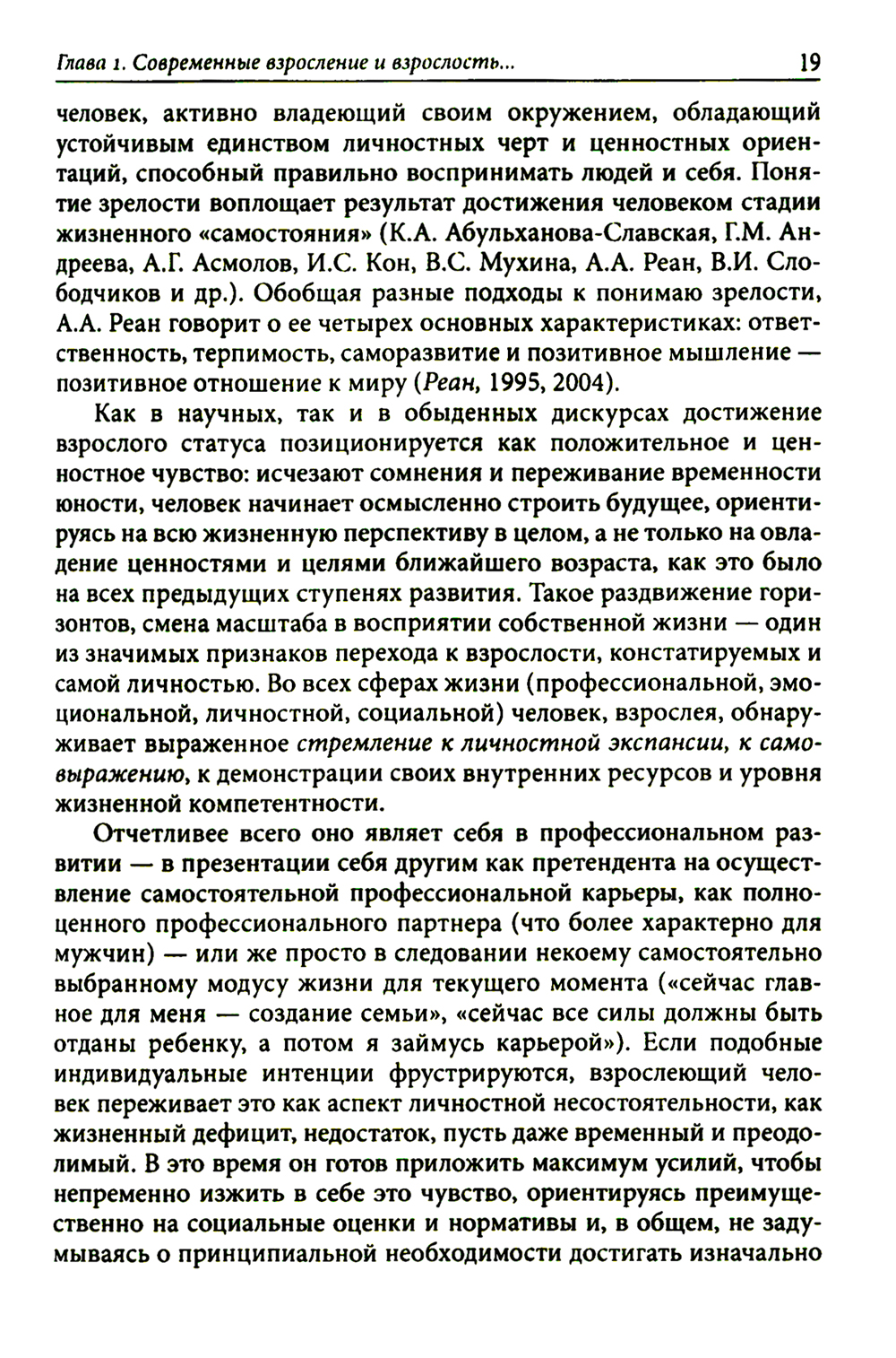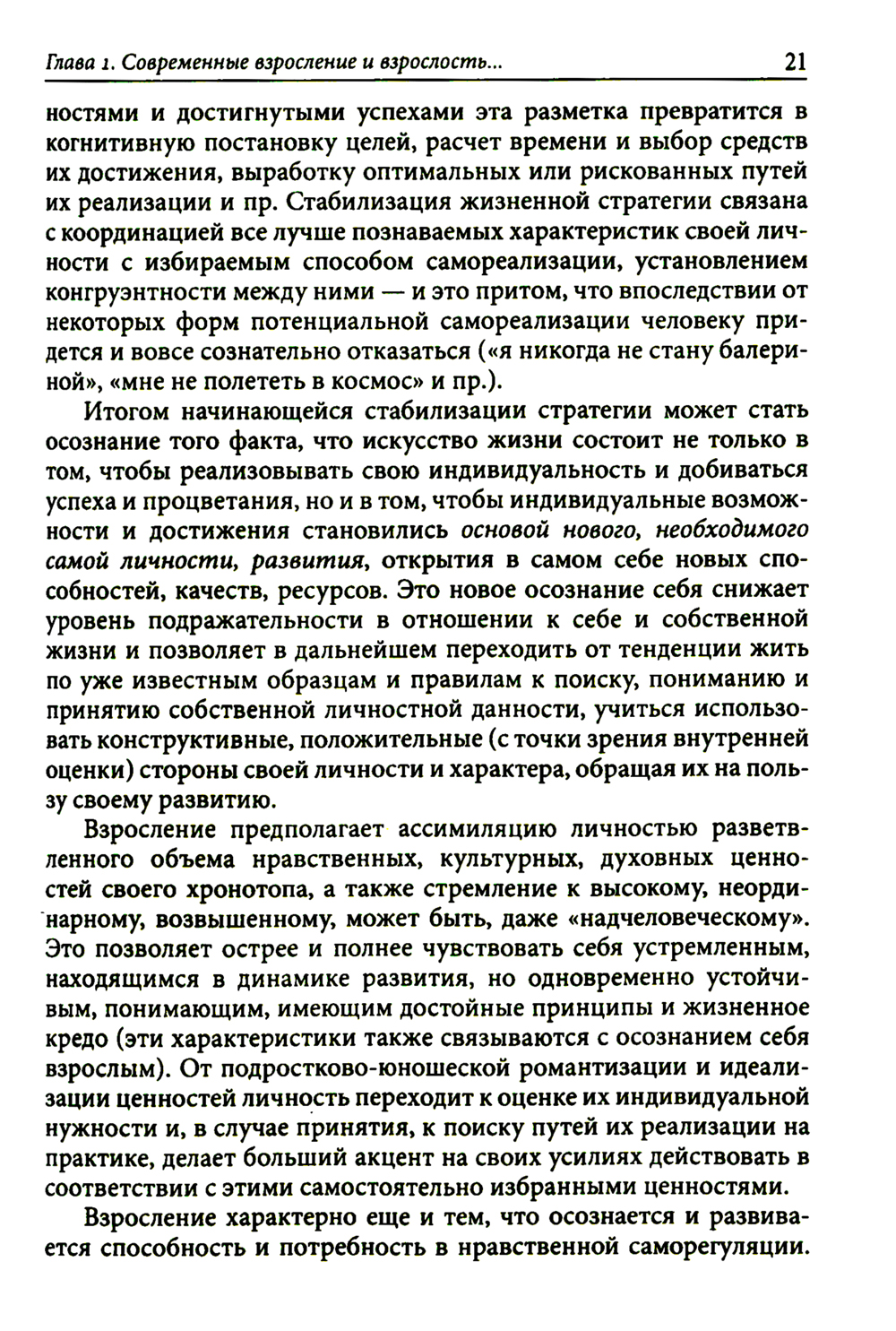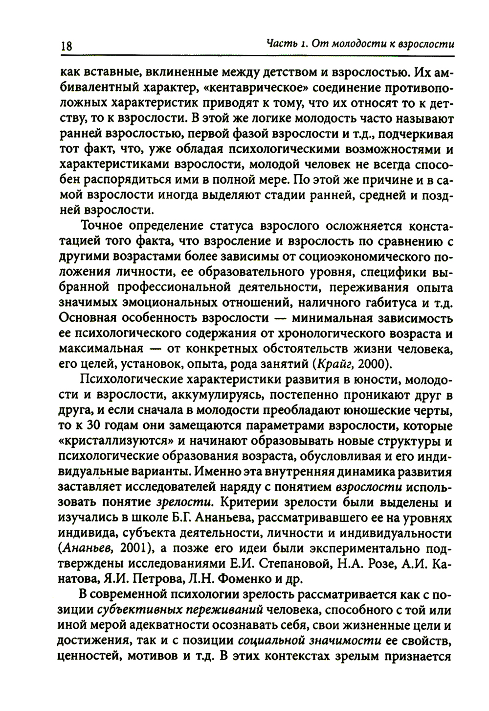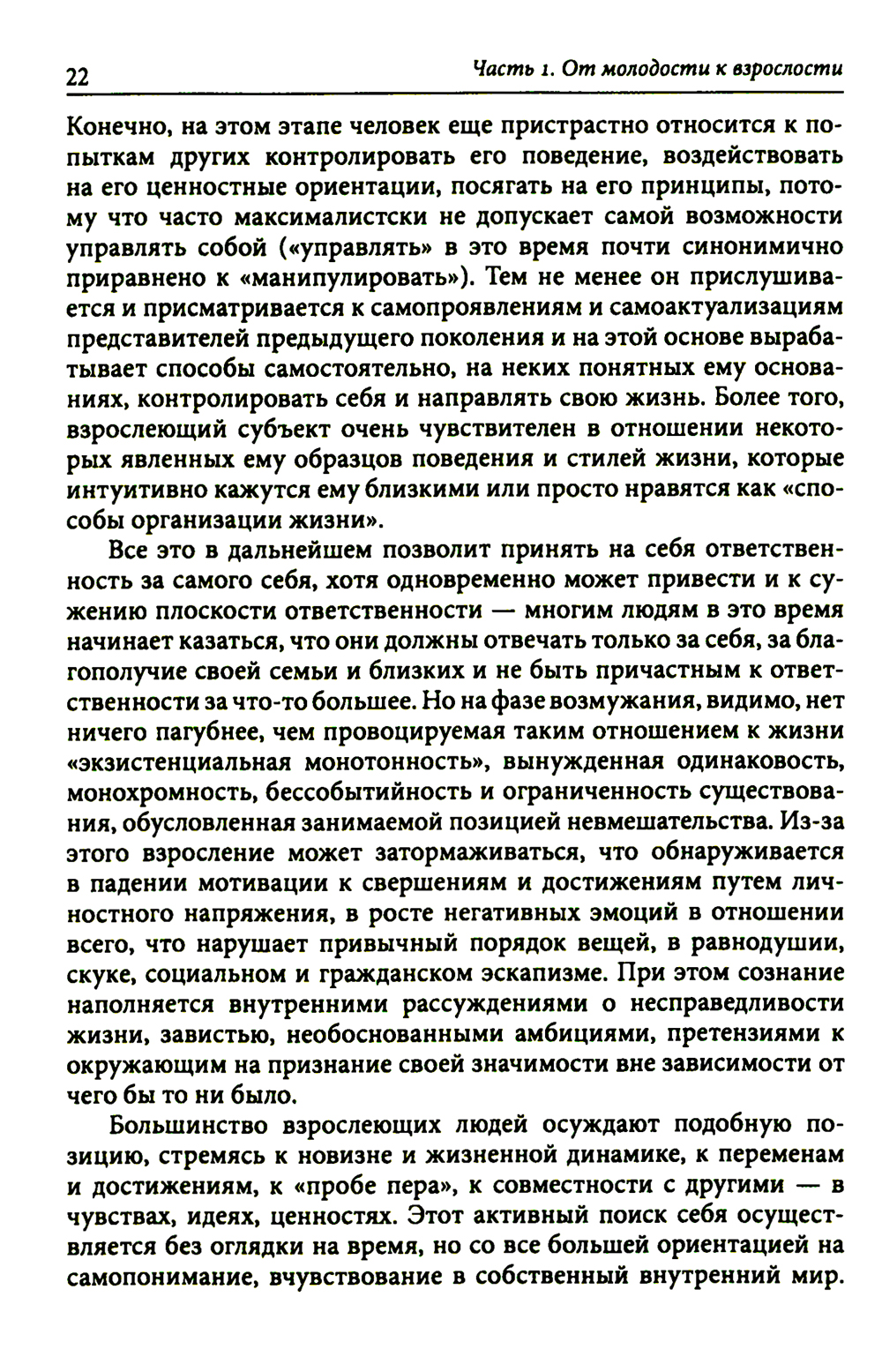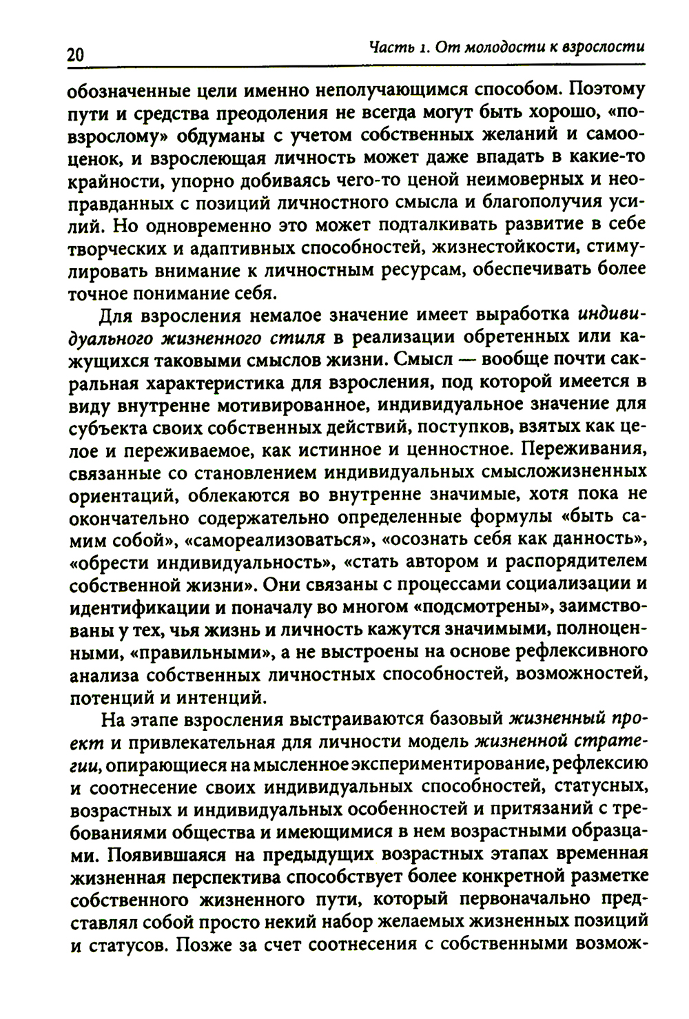 Монография содержит многоплановый теоретический анализ современной взрослости, в центре которого - зрелая, самодетерминируемая, рефлексивная личность, пытающаяся понять себя, найти основания собственного бытия и осмыслить свой жизненный путь. С позиций экзистенциально-психологического и смежного с ним нарративного подходов дана авторская трактовка внутреннего пространства осознания взрослым человеком самого себя как субъекта собственной жизни. Книга адресуется специалистам в области возрастной, социальной, экзистенциальной и нарративной психологии, психологии личности, а также психотерапевтам, консультантам, работающим с проблемами взрослых людей, и специалистам смежных гуманитарных областей.| Издательство | Смысл |