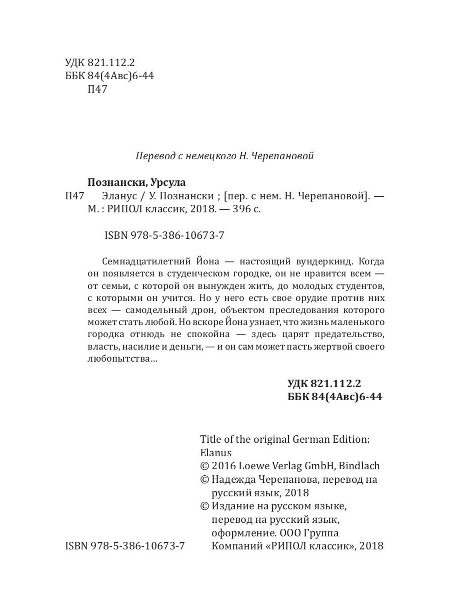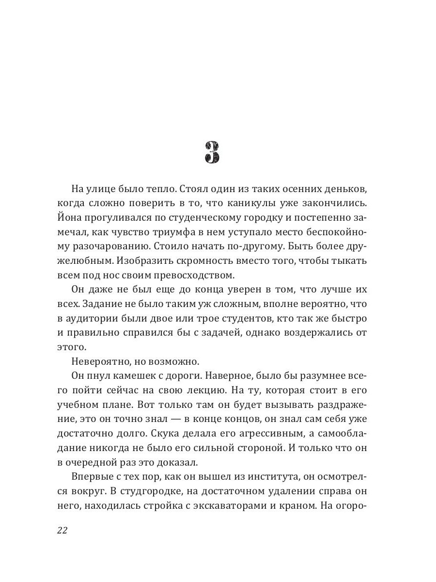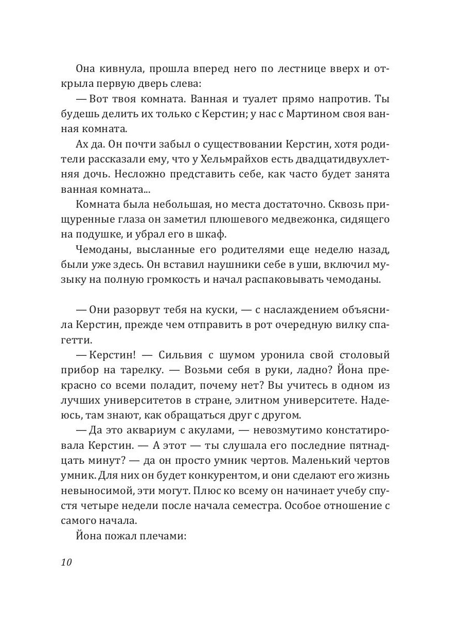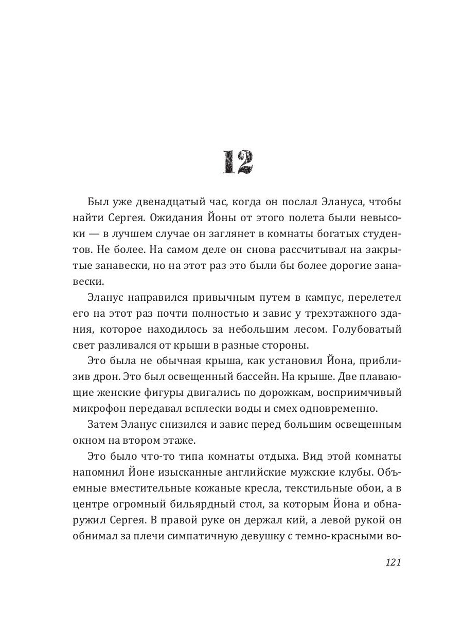 Семнадцатилетний Йона - настоящий вундеркинд. Когда он появляется в студенческом городке, он не нравится всем - от семьи, с которой он вынужден жить, до молодых студентов, с которыми он учится. Но у него есть свое орудие против них всех - самодельный дрон, объектом преследования которого может стать любой. Но вскоре Йона узнает, что жизнь маленького городка отнюдь не спокойна - здесь царят предательство, власть, насилие и деньги, - и он сам может пасть жертвой своего любопытства...| Издательство | Рипол Классик |