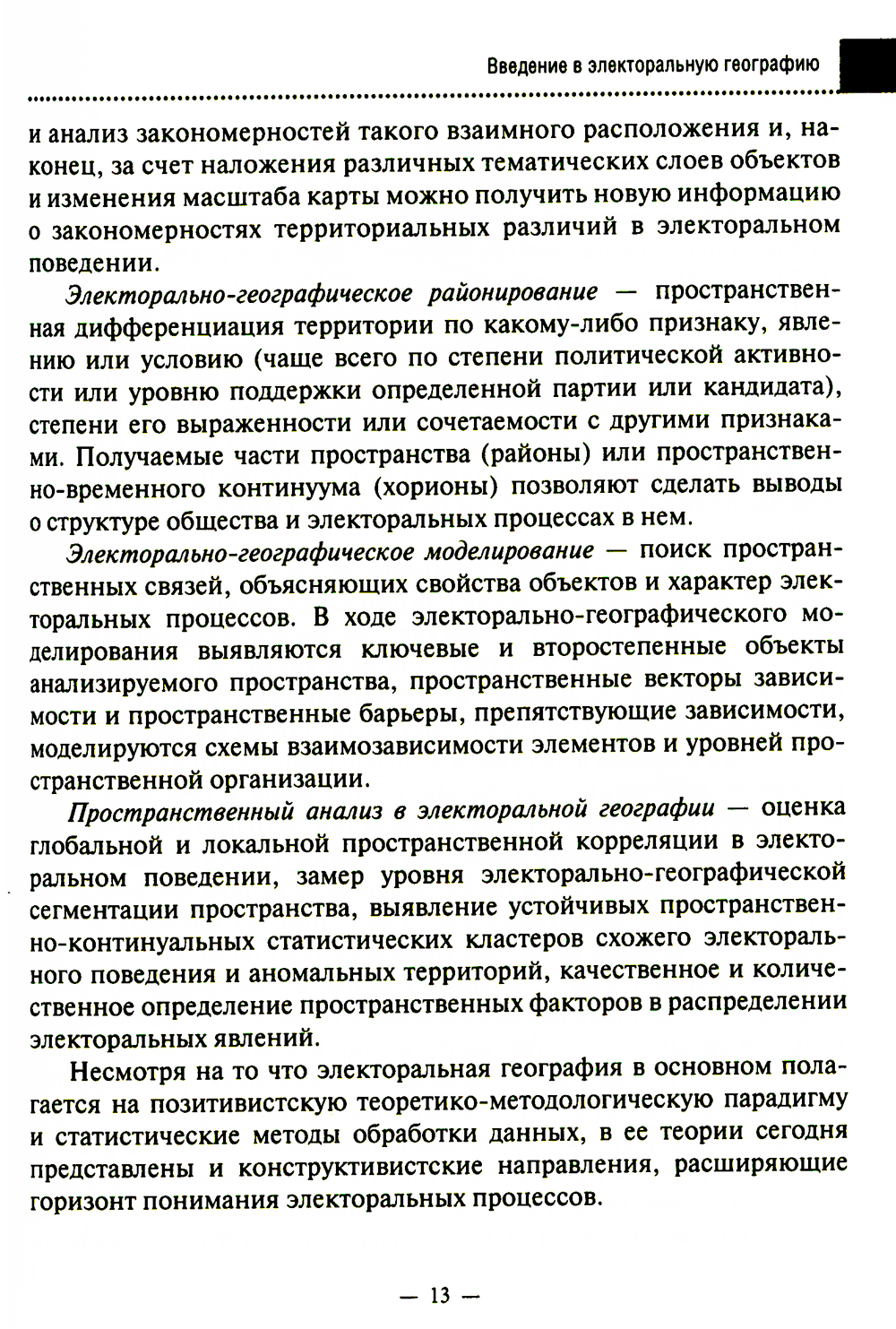 Электоральная география - это наука о пространственном измерении избирательного процесса. Дисциплина обобщает факторы и закономерности, лежащие в основе устойчивых идейно-политических расколов в обществе и их территориальных различий, а также в политической активности избирателей и распределении их голосов за партии и кандидатов по административно-территориальным единицам разного уровня, избирательным округам и участкам. В работе концептуализируется и операционализируется явление географического фаворитизма и пространственной диспропорциональности избирательных и партийных систем. На основе методологии пространственного статистического анализа и геоинформационного моделирования разработаны алгоритмы оценки роли пространства в электоральном поведении грждан. Монофафия ориентирована на исследователей в области общественной геофафии, политологии, электоральной социологии и избирательного права, а также специалистов в области политического консультирования. Может использоваться студентами при изучении соответствующей дисциплины.| Издательство | Аспект-Пресс |