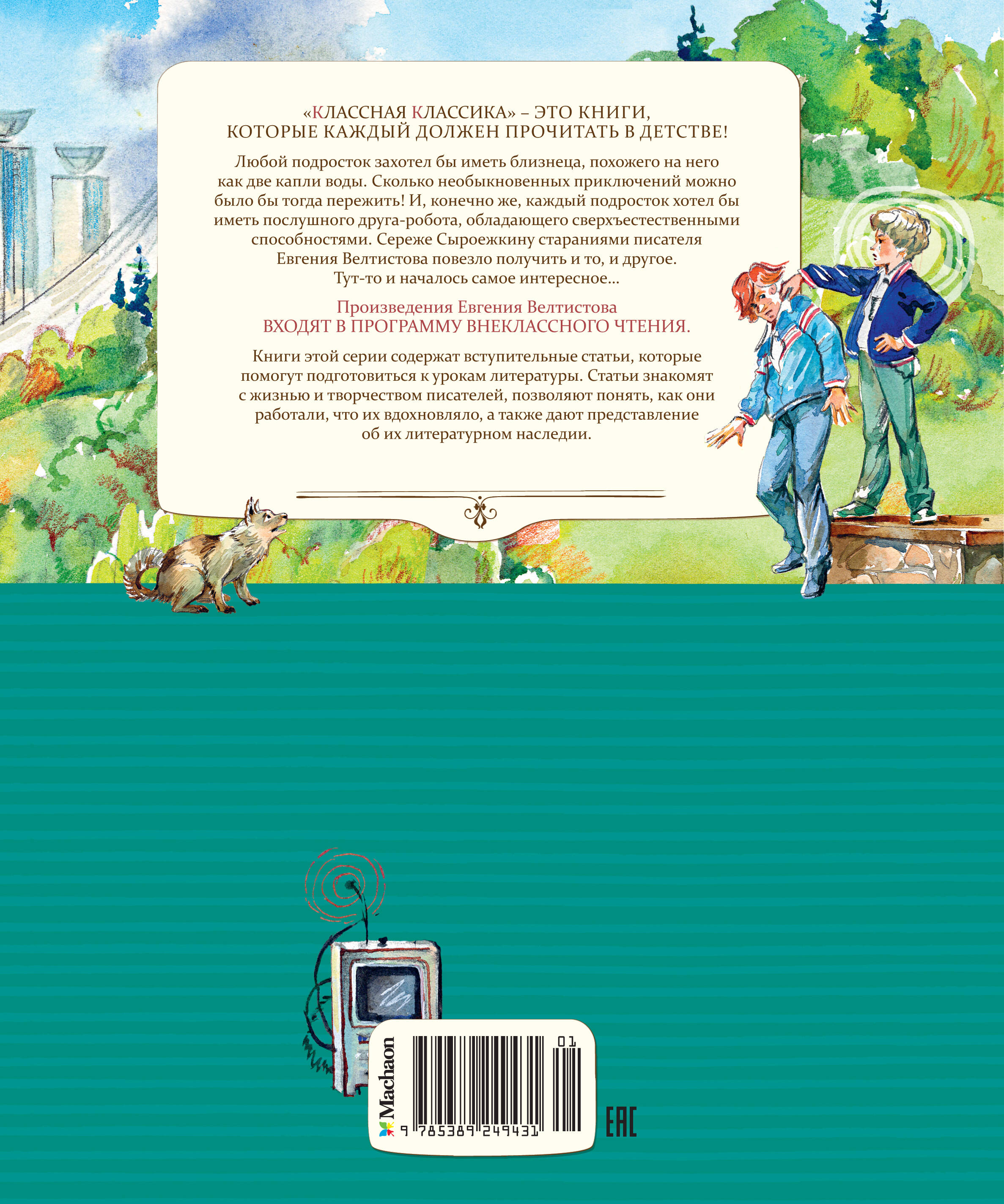 Любой подросток захотел бы иметь близнеца, похожего на него как две капли воды. Сколько необыкновенных приключений можно было бы тогда пережить! И, конечно же, каждый подросток хотел бы иметь послушного друга робота, обладающего сверхъестественными способностями. Серёже Сыроежкину стараниями писателя Евгения Велтистова повезло получить и то и другое. Тут-то и началось самое интересное…| Издательство | Азбука-Аттикус Издат.группа ООО |