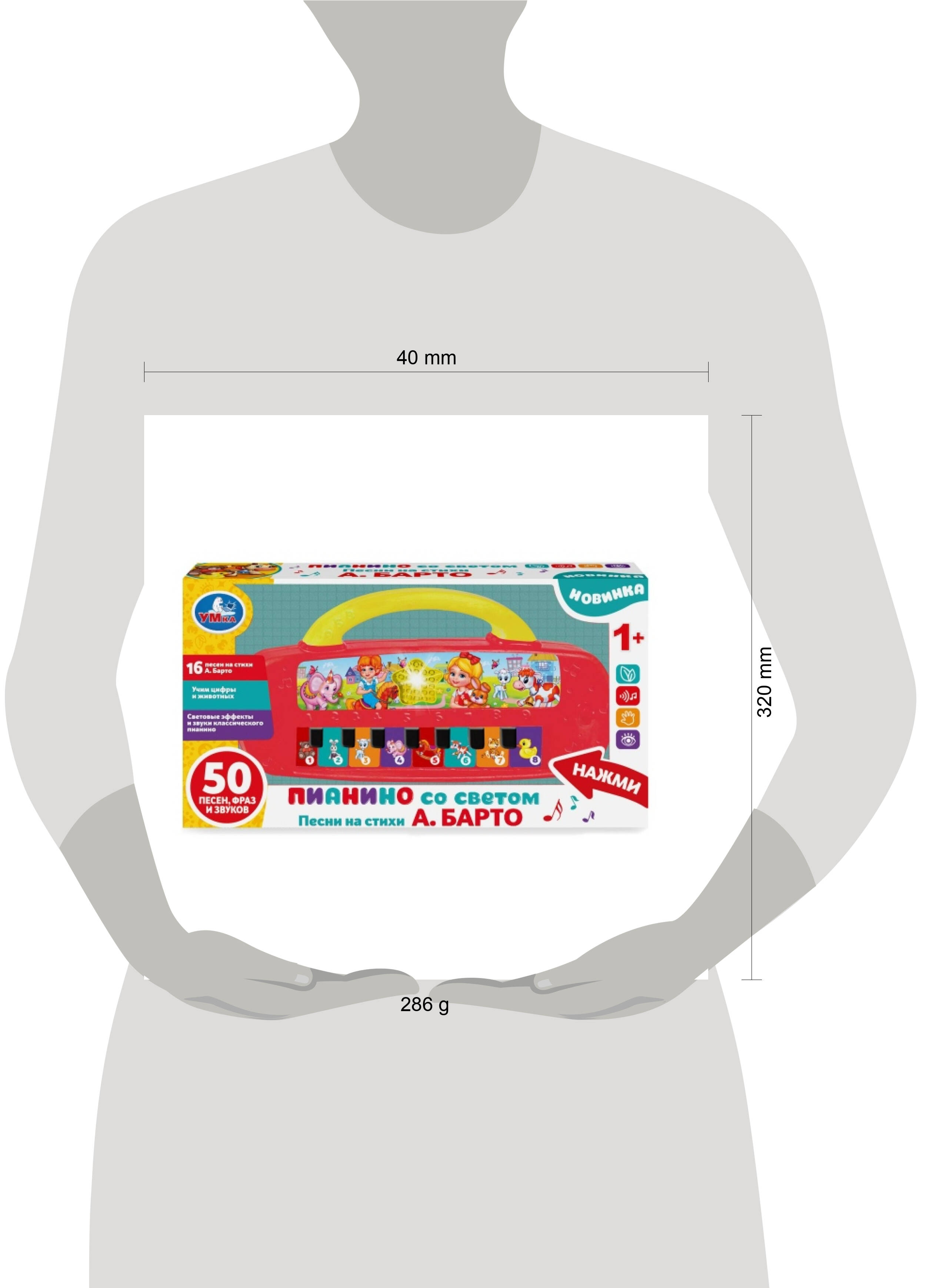 Музыкальное электропианино с песнями на стихотворения А. Барто ТМ "УМка" станет прекрасным подарком для ребёнка: - 16 песен на стихи Агнии Барто: "Нарисуем огород", "Помощница", "Чудеса", "Сторож", "Я знаю, что надо придумать", "Смешной цветок" и др. - учим цифры и животных - звуки классического пианино - световые эффекты Яркое электропианино непременно понравится вашему малышу и будет способствовать развитию его творческих способностей. Ребёнок с удовольствием будет нажимать на клавиши и слушать весёлые песенки и звуки. Перейдя в режим пианино, малыш сможет придумать и наиграть собственную мелодию. Игра с электропианино ТМ "УМка" развивает: - слуховые навыки и музыкальный слух - координацию движений - визуальное восприятие - мелкую моторику - внимание - артистизм Размер: 24 x 11 x 3 см. Материал: пластмасса. Работает от 2-х батареек типа АА (входят в комплект). Рекомендовано детям от 1 года.| Издательство | СИМБАТ ООО |