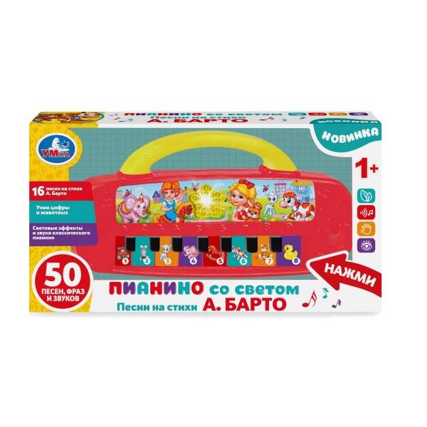 Электропианино БАРТО А. 50 песен, фраз и звуков, свет, на бат., в кор. Умка в кор.72шт