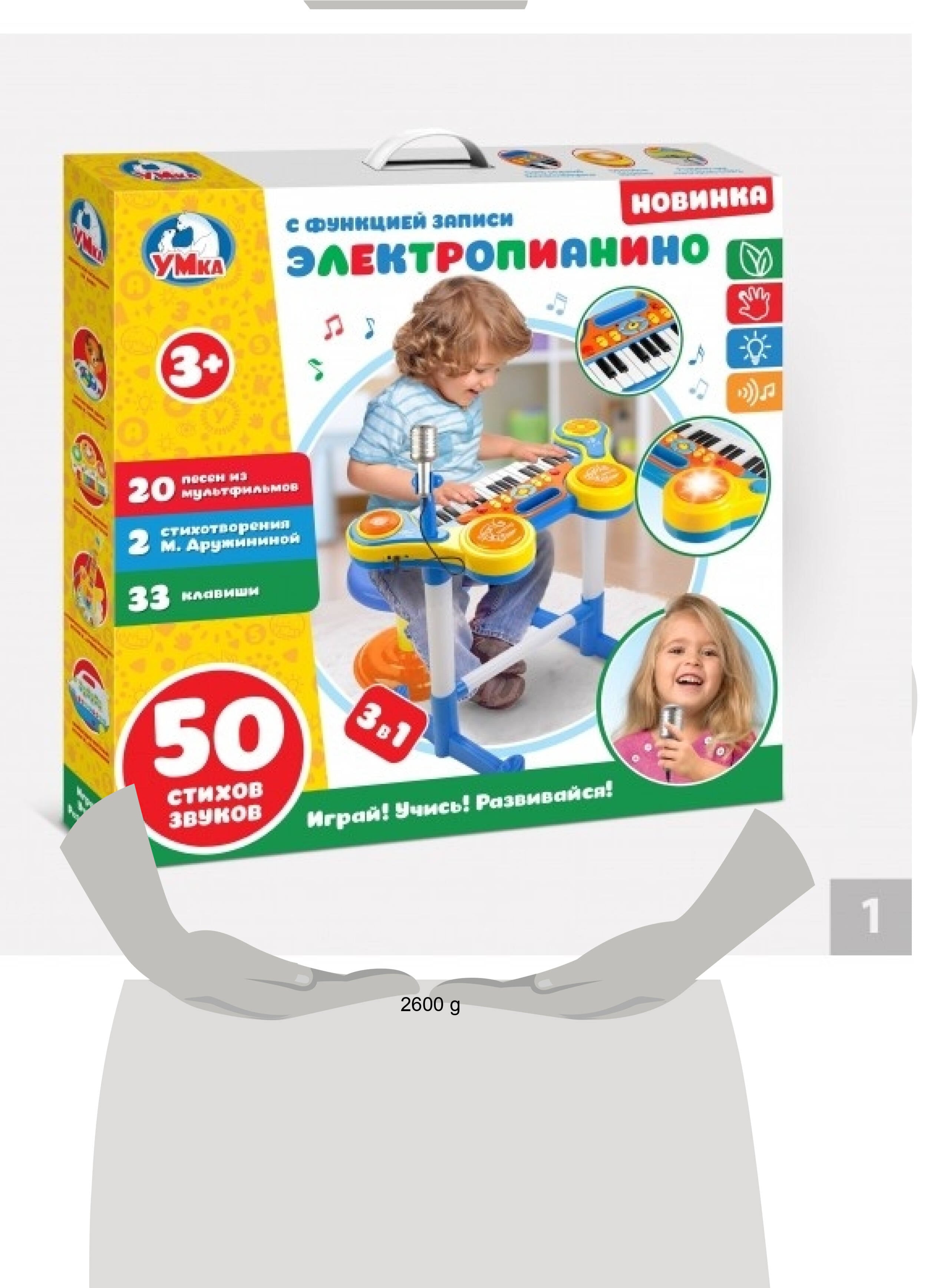 Аннотация: Электропианино на бат. 20 песен, стихи М.Дружининой,7 тональностей,функция записи.ТМ"УМКА" в кор.6шт