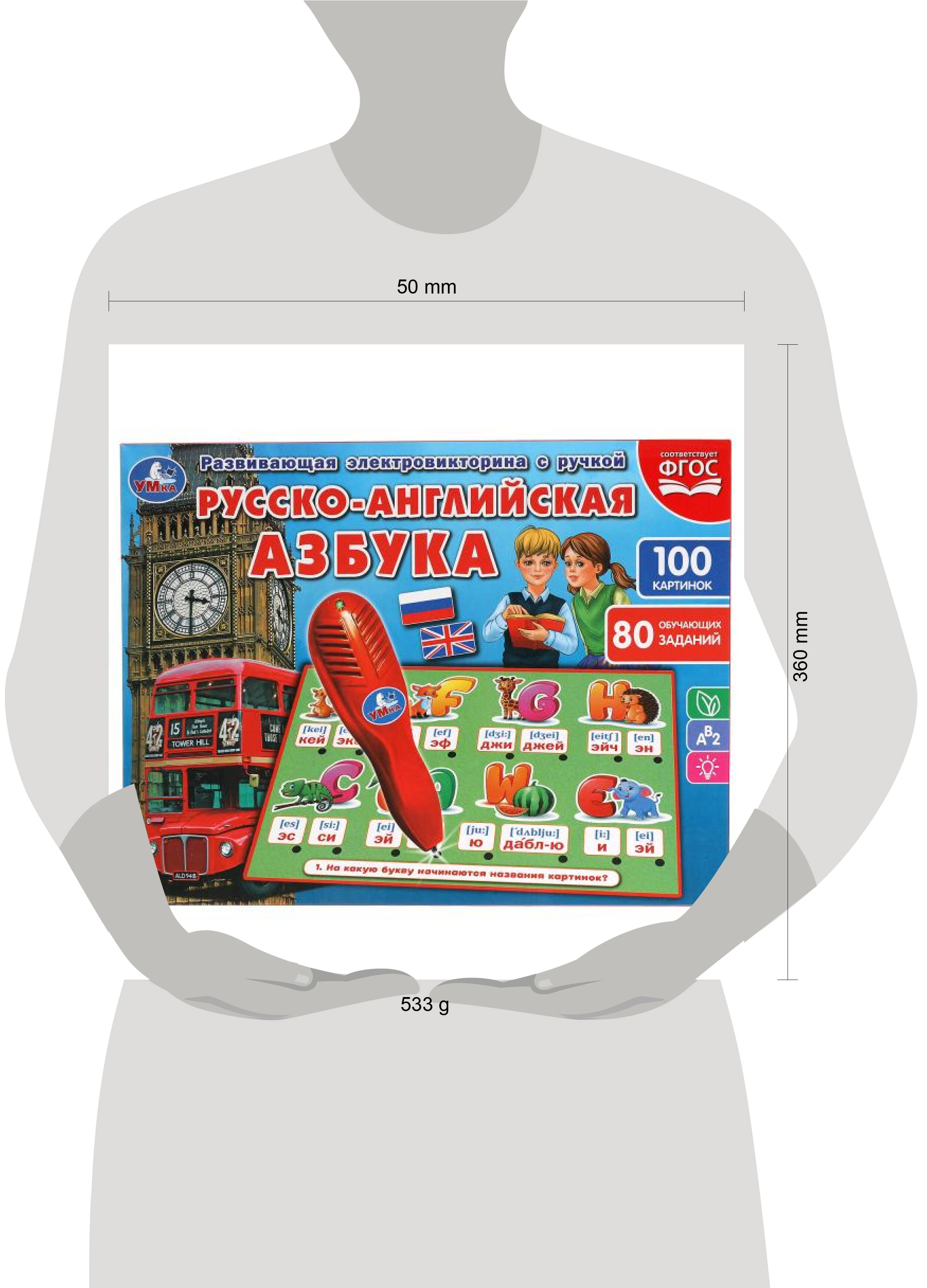 Электровикторина с ручкой русско-английская азбука.180 картинок,заданий.кор.бат. Умка в кор.24шт