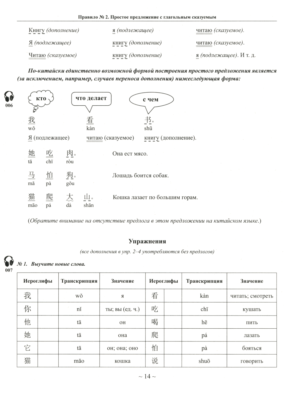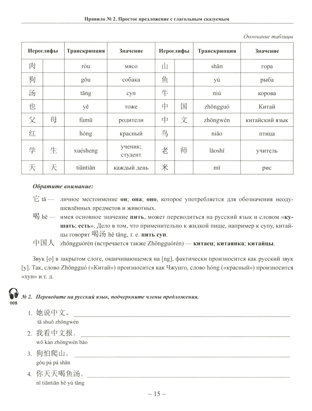 В пособии рассмотрены вопросы грамматического строя китайского языка. В доступной форме излагаются основные правила построения фраз, предложений, раскрываются особенности атрибутивных отношений, рассматриваются наиболее общие вопросы синтаксиса. В пособии активно использована транскрипция, что облегчит задачу усвоения материала, если вы обладаете недостаточным запасом иероглифов. Каждый раздел пособия сопровождается упражнениями, с помощью которых вы закрепите теоретический материал. Ключи к упражнениям приведены в конце книги. Пособие адресовано студентам младших курсов востоковедческих вузов, обучающимся по различным направлениям подготовки, а также широкому кругу лиц, изучающих китайский язык в составе организованных групп, под руководством преподавателя или самостоятельно.