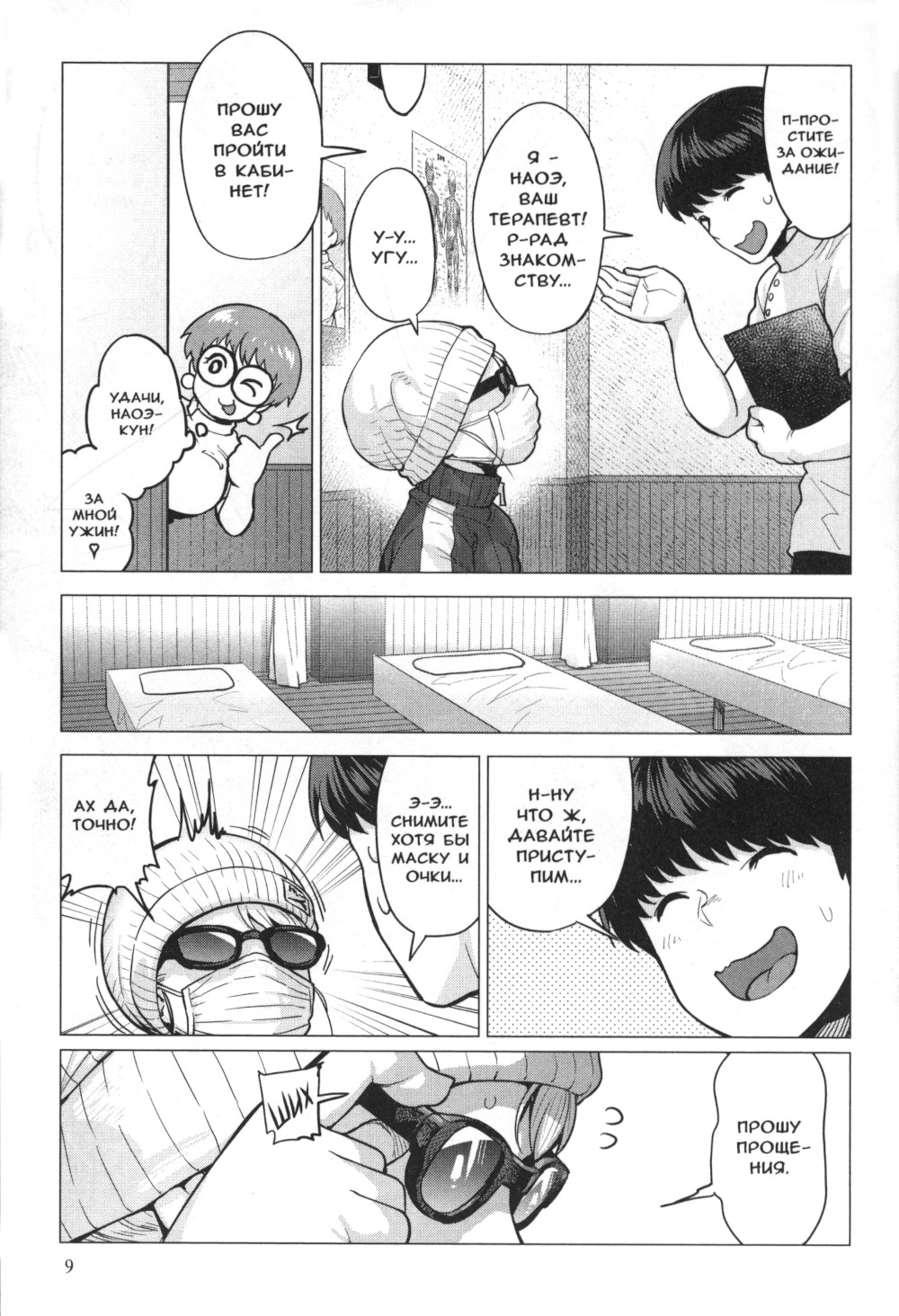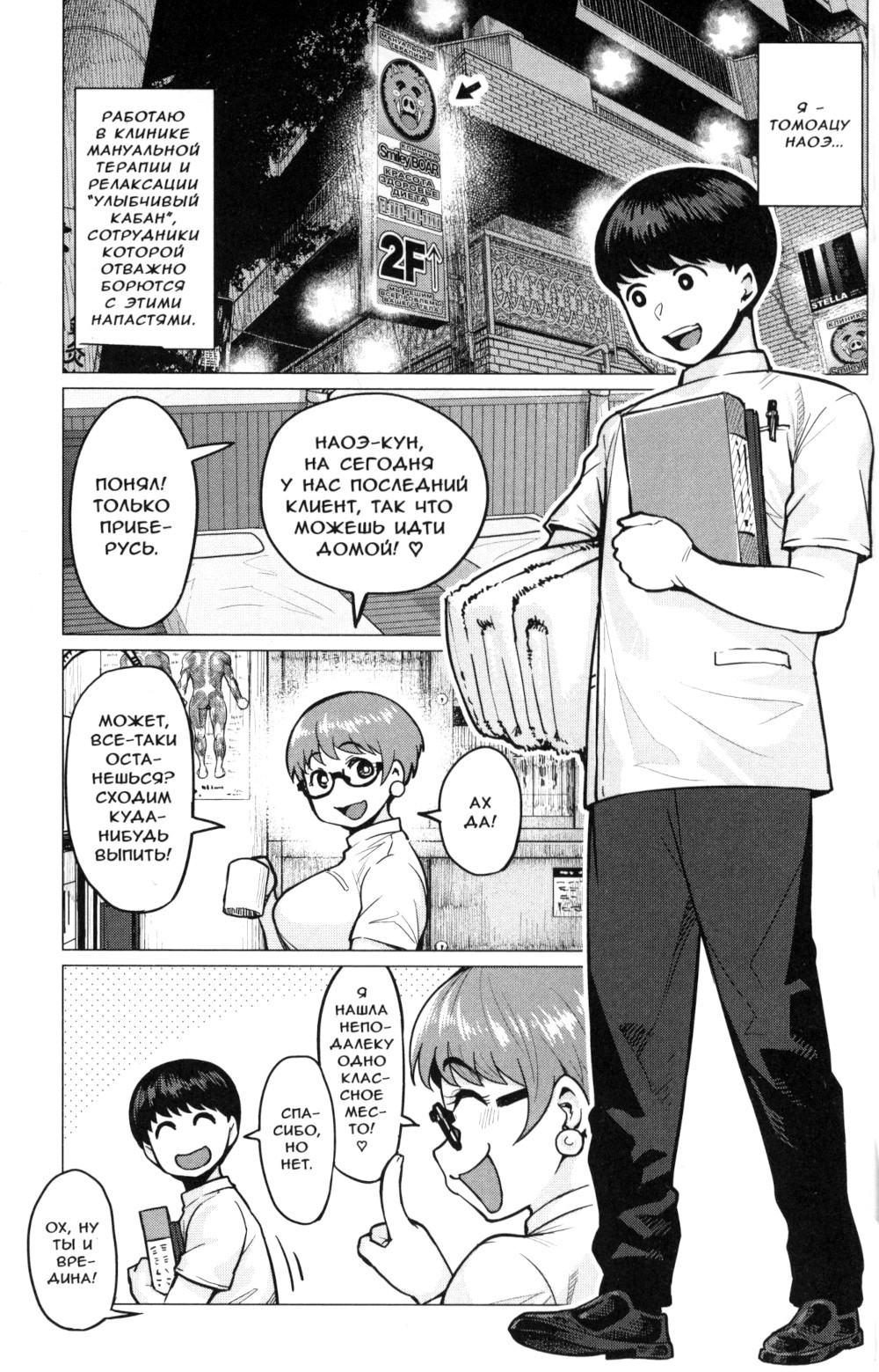 Наоэ Томоацу, юный консультант в популярной клинике сэйтай-терапии, помогает инопланетной эльфийке поправить фигуру.| Издательство | Фабрика комиксов |