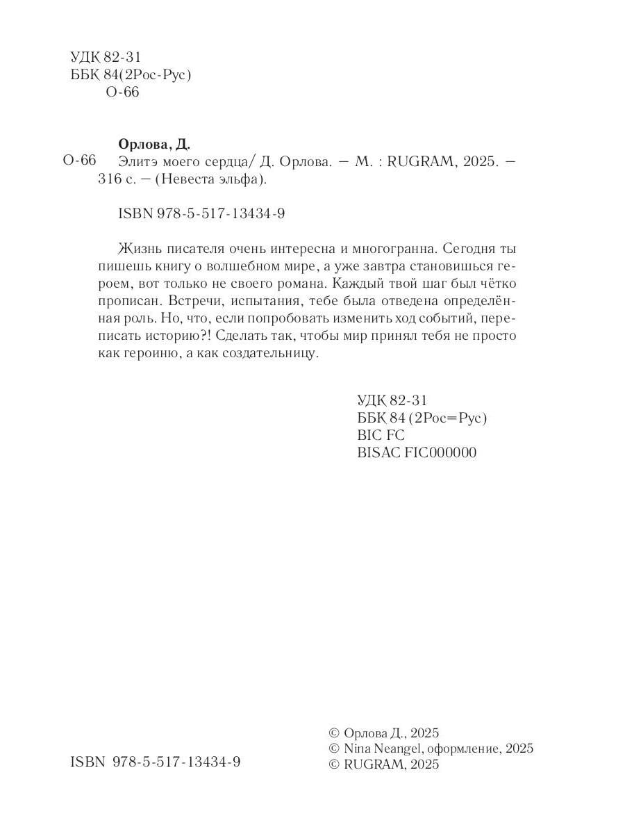 Жизнь писателя очень интересна и многогранна. Сегодня ты пишешь книгу о волшебном мире, а уже завтра становишься героем, вот только не своего романа. Каждый твой шаг был чётко прописан. Встречи, испытания, тебе была отведена определённая роль. Но, что, если попробовать изменить ход событий, переписать историю?! Сделать так, чтобы мир принял тебя не просто как героиню, а как создательницу.| Издательство | Т8 RUGRAM |