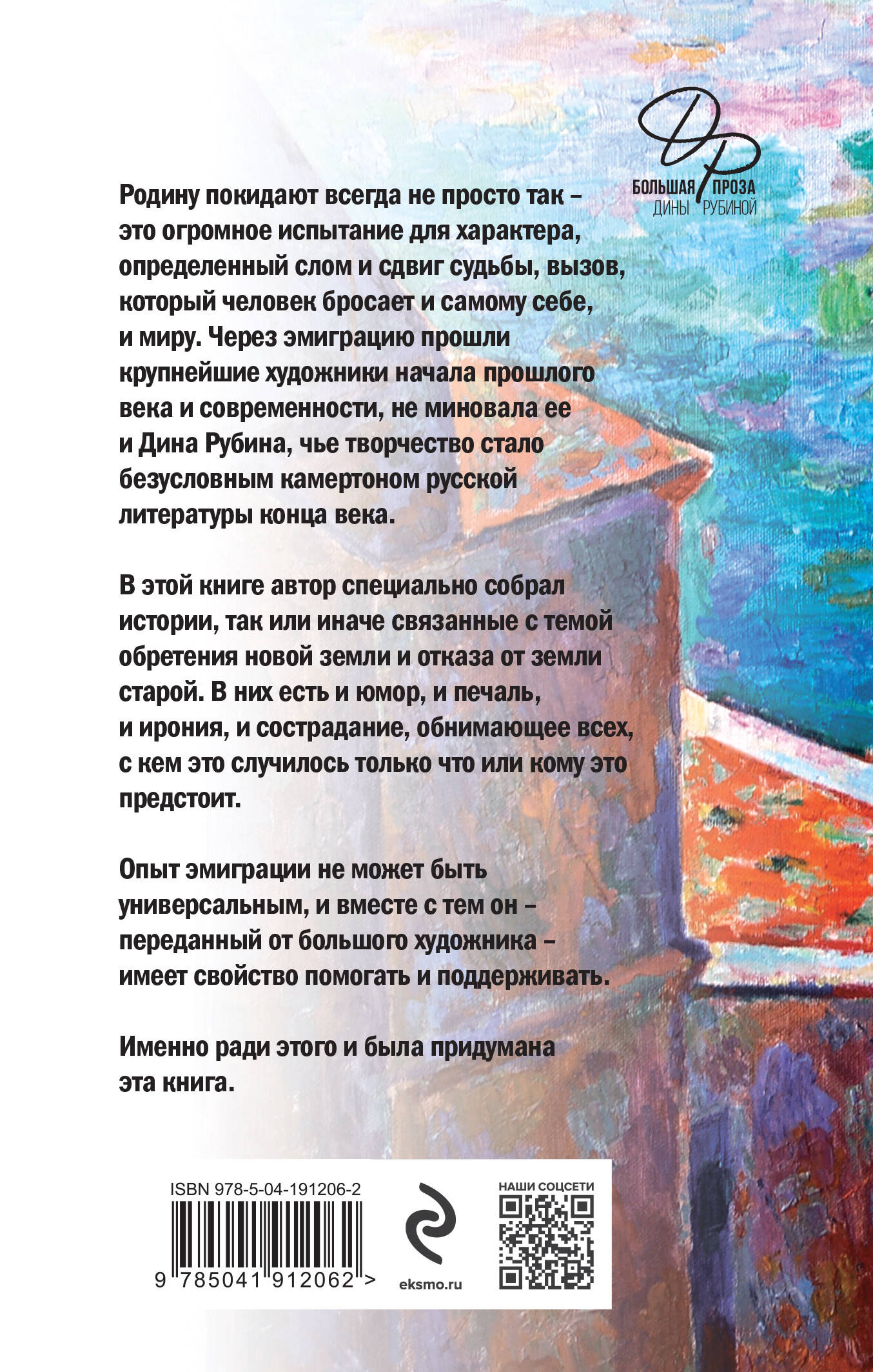 Эмиграция - явление старое, пережившее пик поэтизации в годы Первой мировой войны и сильно романтизированное благодаря Василию Кандинскому, Ивану Бунину и Федору Шаляпину. Родину покидают всегда не просто так, - это огромное испытание для характера, определенный слом и сдвиг судьбы, вызов, который человек бросает и самому себе, и миру. Через эмиграцию прошли крупнейшие художники начала прошлого века и современности, не миновала ее и Дина Рубина, чье творчество стало безусловным камертоном русской литературы конца века. В этой книге автор специально собрал истории, так или иначе связанные с темой обретения новой земли и отказа от земли старой. В них есть и юмор, и печаль, и ирония, и сострадание, обнимающее всех, с кем это случилось только что или кому это предстоит. Опыт эмиграции не может быть универсальным, и вместе с тем он - переданный от большого художника - имеет свойство помогать и поддерживать. Именно ради этого и была придумана эта книга.| Издательство | ООО "Издательство "Эксмо" |