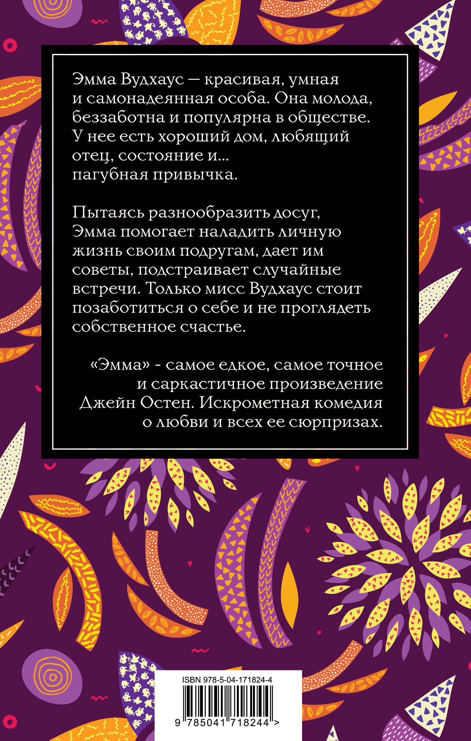 Джейн Остен по праву считают первой леди английской литературы. Ее произведения обязательны для изучения во всех колледжах и университетах Великобритании. Ее книги являются признанными шедеврами и покоряют искренностью и простотой сюжета. «Эмма» - самое едкое, самое точное и саркастичное из произведений писательницы, оно же - последнее, увидевшее свет при ее жизни. Эта история достаточно нетипичная: героиня не бедна, у нее все есть - хороший дом, любящий отец, состояние, нет только мужа. Но она и не торопится замуж, предпочитая устраивать судьбы своих подруг и знакомых и тем самым порой попадая впросак. При этом, занимаясь чужой личной жизнью, Эмма чуть не проглядела собственное счастье…| Издательство | ООО "Издательство "Эксмо" |