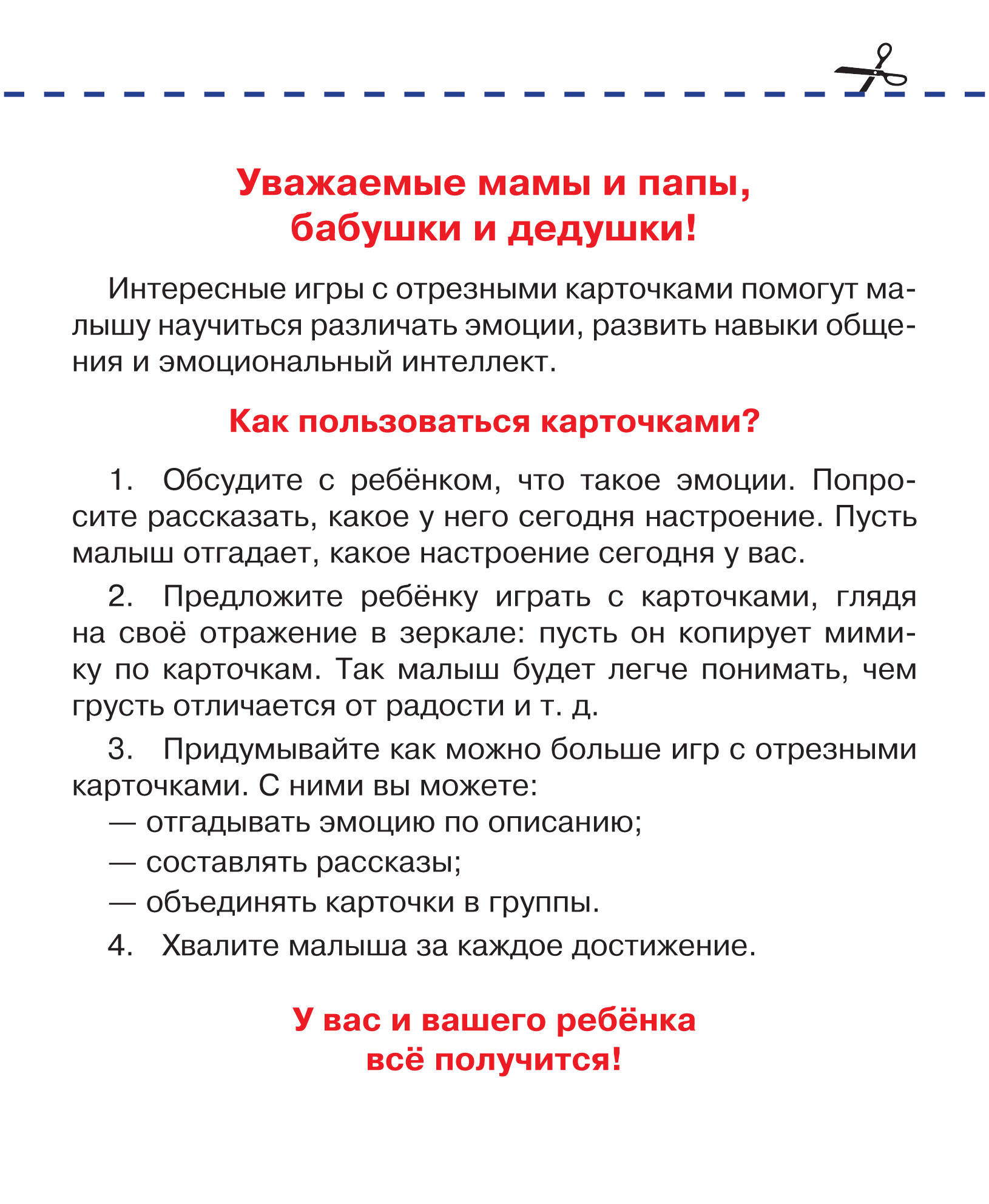 Учимся понимать себя и других! Ваш ребенок ещё не всегда может выразить словами свои чувства? Ему трудно понимать эмоции других людей? Тогда развивающая книжка «Эмоции» то, что вам нужно. Она поможет малышу освоить язык чувств! Что внутри? • яркие иллюстрации; • простые и понятные объяснения эмоций; • увлекательные задания для развития эмоционального интеллекта. С помощью этой книги ребёнок: • научится распознавать и называть свои эмоции; • поймёт, как реагировать на чувства окружающих; • улучшит общение с друзьями и взрослыми; • обретёт уверенность в себе. Преобразите обучение в игру! Каждая страничка книжки - это карточка с красочным изображением, которую везде можно брать с собой. Подарите ребёнку важный навык - понимать и выражать свои эмоции!