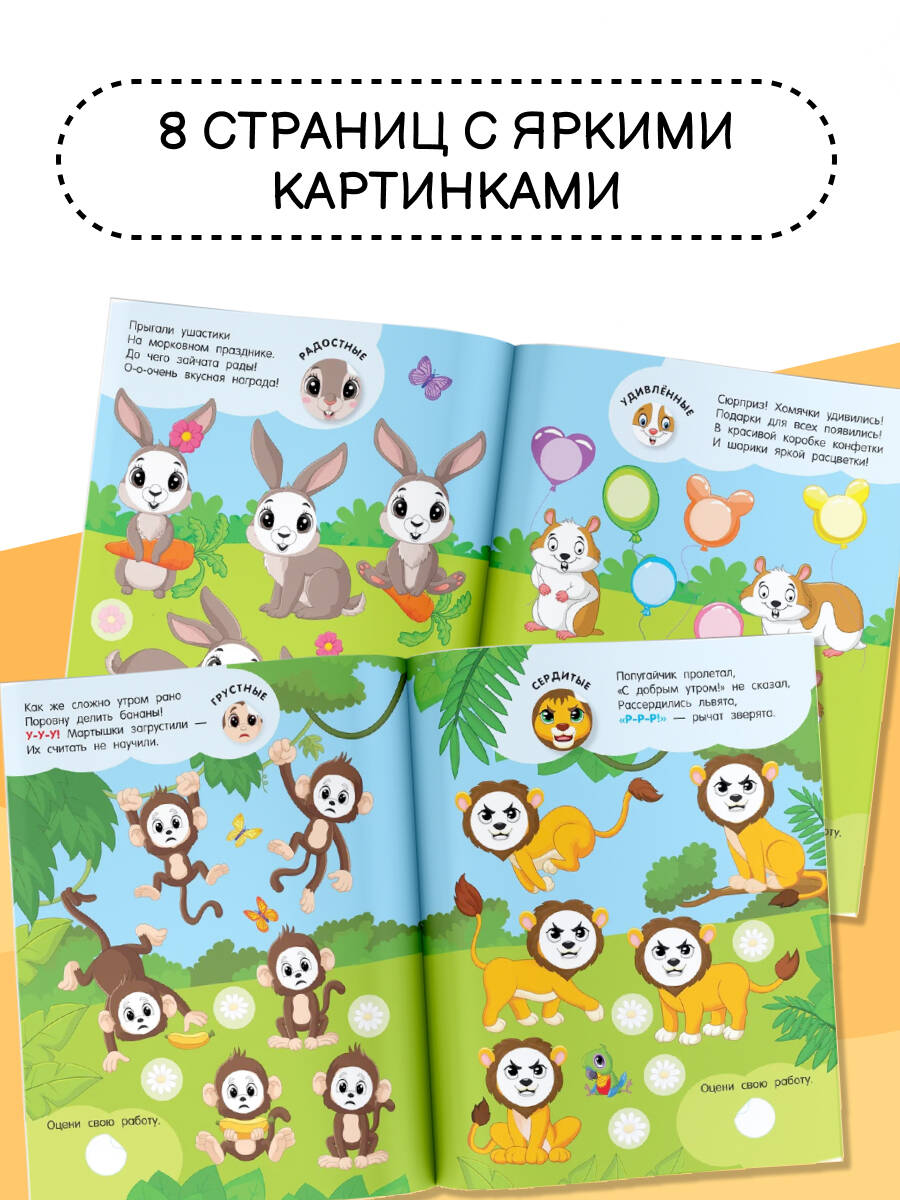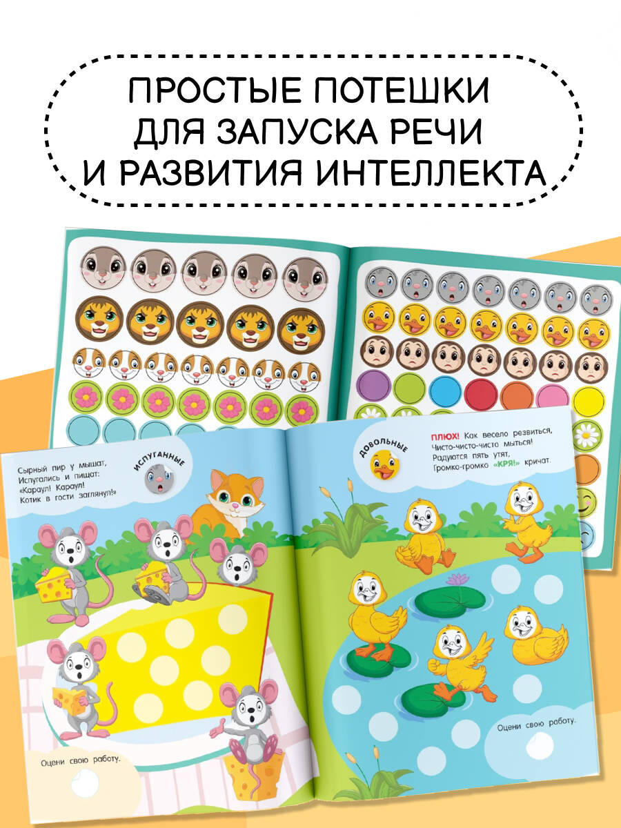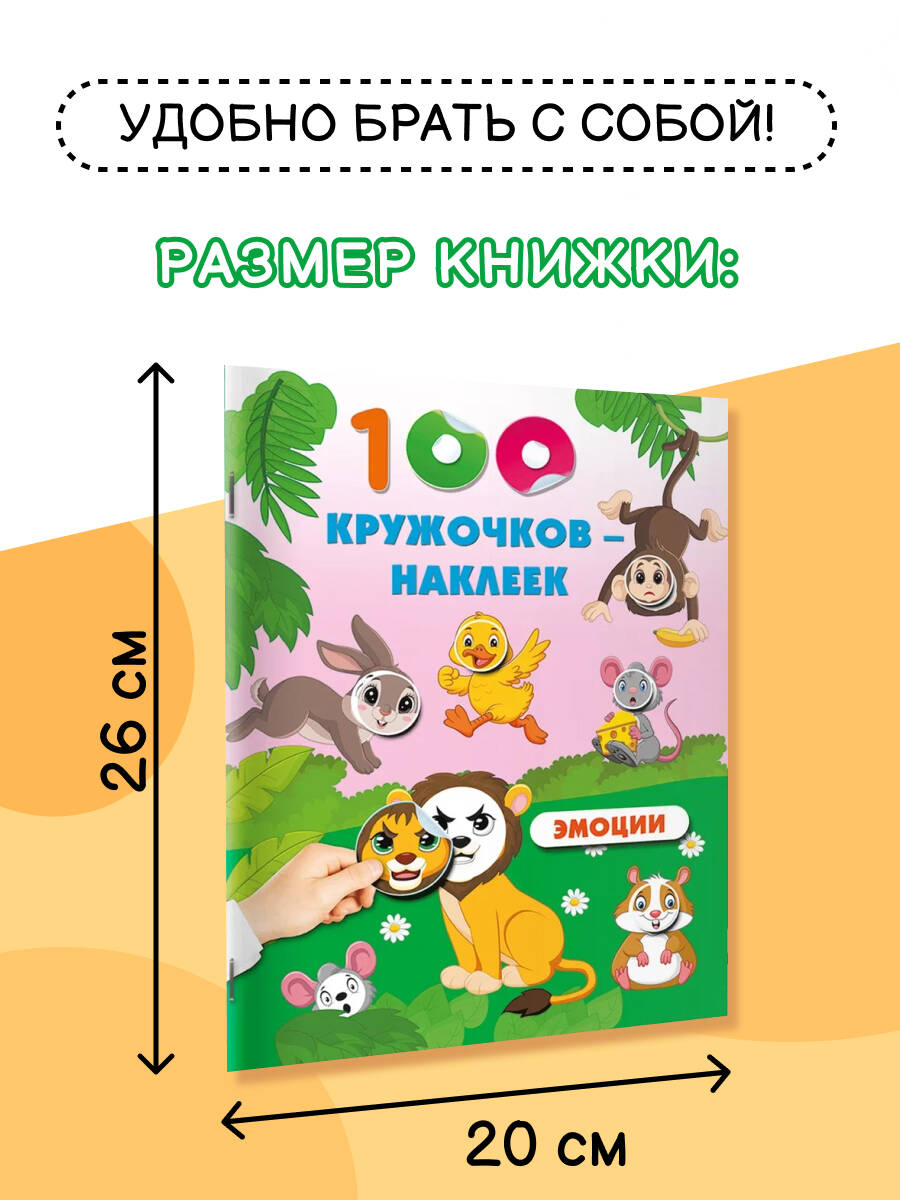 Ищете подарок сыну или дочке? «Эмоции» - цветная книжка-развивайка, в которой 100 кружочков-наклеек, надолго увлечёт маленького непоседу. На каждой страничке сюжетные картинки, понятные ребёнку, - он покажет и назовёт различных персонажей, каждый из которых переживает свои эмоции. Яркие привлекательные картинки помогут лучше понимать, как эмоции могут выражаться в различных ситуациях. Простые потешки со звукоподражаниями легко запомнить и выучить наизусть. А занятия с мамой формируют социальные связи и навыки сотрудничества, создают доверительную атмосферу. Книга удобного формата - можно взять с собой в дорогу, на дачу, в путешествие. Бумага плотная и качественная. Крупные круглые наклейки с хорошей печатью, легко отделяются от основы - идеально подойдут для детских пальчиков. Подбирать наклейки для каждой картинки - весело, увлекательно и полезно. Сенсорная игра развивает мелкую моторику, внимание, усидчивость, координацию движений, пространственное мышление, фантазию и творческие способности. Интерактивная развивающая книжка-игра станет уникальным подарком для девочек и мальчиков на день рождения или Новый год.| Издательство | Издательство "АСТ" |