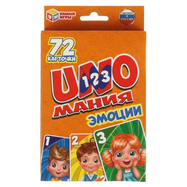 Аннотация: Эмоции. Уномания. Коробка с европодвесом. карточки 72 шт. 85х62 мм. Умные игры в кор.50шт