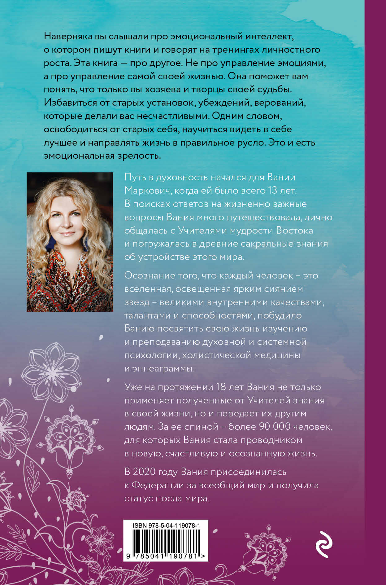 Вы наверняка встречали словосочетание «эмоциональный интеллект». О нём написано много книг, создано не меньше образовательных курсов. Развивать эмоциональный интеллект очень важно, но это лишь первая ступень. Вторая - это эмоциональная зрелость. Что значит быть эмоционально зрелым человеком? Это значит научиться управлять своими эмоциями, сделать их своими союзниками и не позволять им взять над собой власть. В основу книги этой книги лёг одноименный курс Вании Маркович - основательницы Школы осознанной жизни «Симург» и Международной Академии Расстановок, автора курсов по эмоциональному интеллекту, бесконфликтному общению и экологии отношений, посла Мира в Международной Федерации за Мир при ООН. Вания помогла тысячам людей прийти к эмоциональной зрелости. Теперь и у вас есть уникальная возможность перейти на новый уровень жизни, ведь от наших эмоций зависит буквально все: отношения с людьми, ощущение внутренней гармонии, успех в работе и наше здоровье. В книге рассматриваются 20 черт характера, которые есть у всех нас, но в разных комбинациях. Именно они мешают нам жить, выстраивать гармоничные отношения, добиваться поставленных целей и быть счастливыми. Откуда берутся черты? Как их распознать? А самое главное - как их трансформировать, чтобы они стали нашей силой, а не слабостью? Все материальные изменения, которые происходили с учениками Вании, - это следствие внутренних трансформаций.| Издательство | ООО "Издательство "Эксмо" |