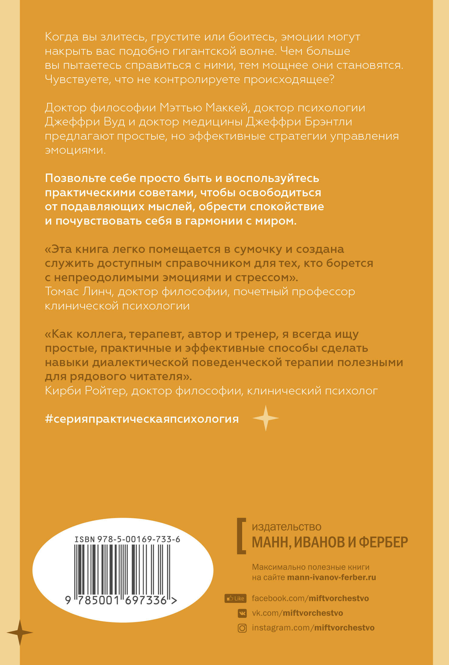 Иногда эмоции похожи на сметающую все на своем пути приливную волну. Но чем больше вы пытаетесь их задавить, тем сильнее они становятся. Это карманное руководство, основанное на диалектической поведенческой терапии (ДПТ), предлагает емкие стратегии управления непреодолимыми эмоциями - где бы они ни проявились. В этом справочнике, который можно брать с собой куда угодно, клинические психологи и авторы Мэттью Маккей, Джеффри Вуд и Джеффри Брэнтли предлагают быстрые и простые стратегии, которые помогут взять под контроль свои эмоции и начать жить той жизнью, которой вы хотите. Используя эту удобную маленькую книгу, вы обретете свободу от подавляющих мыслей и чувств, откроете для себя спокойствие, улучшите свои отношения и почувствуете себя в гармонии с миром и с собой. Для кого эта книга: Для тех, кто ищет легкие, но действенные методы держать эмоции под контролем. Для тех, кто интересуется психологией и хочет освоить навыки диалектической поведенческой терапии (ДПТ), чтобы изменить свою жизнь. От авторов: Всем нам в жизни приходится сталкиваться с болью и страданиями, которые могут быть как физическими, вроде укуса пчелы или сломанной руки, так и эмоциональными, такими как грусть или злость. Обе разновидности боли зачастую неизбежны и непредсказуемы. Лучшее, что мы можем сделать, - использовать наши имеющиеся навыки преодоления этой боли и надеяться, что они сработают. Чем усерднее вы пытаетесь заблокировать возникновение своих эмоций, тем более непреодолимыми они могут стать. Попытки перестать чувствовать попросту не работают. Но и потакание своим чувствам ведет к проблемам в отношениях и заставляет вас чувствовать, будто вы не имеете никакого контроля над своей жизнью. Что действительно работает в данной ситуации, так это навыки управления эмоциями. Именно о том, как освоить этот набор психологических инструментов, и рассказывается в данном руководстве. Тысячи людей, которые борются с сильными эмоциями, используют навыки управления эмоциями, чтобы достичь так называемой эмоциональной эффективности - способности испытывать настоящие, полноценные эмоции (даже очень сильные) так, чтобы они не превращались в драму. Навыки управления эмоциями могут изменить жизнь - в том числе и вашу.