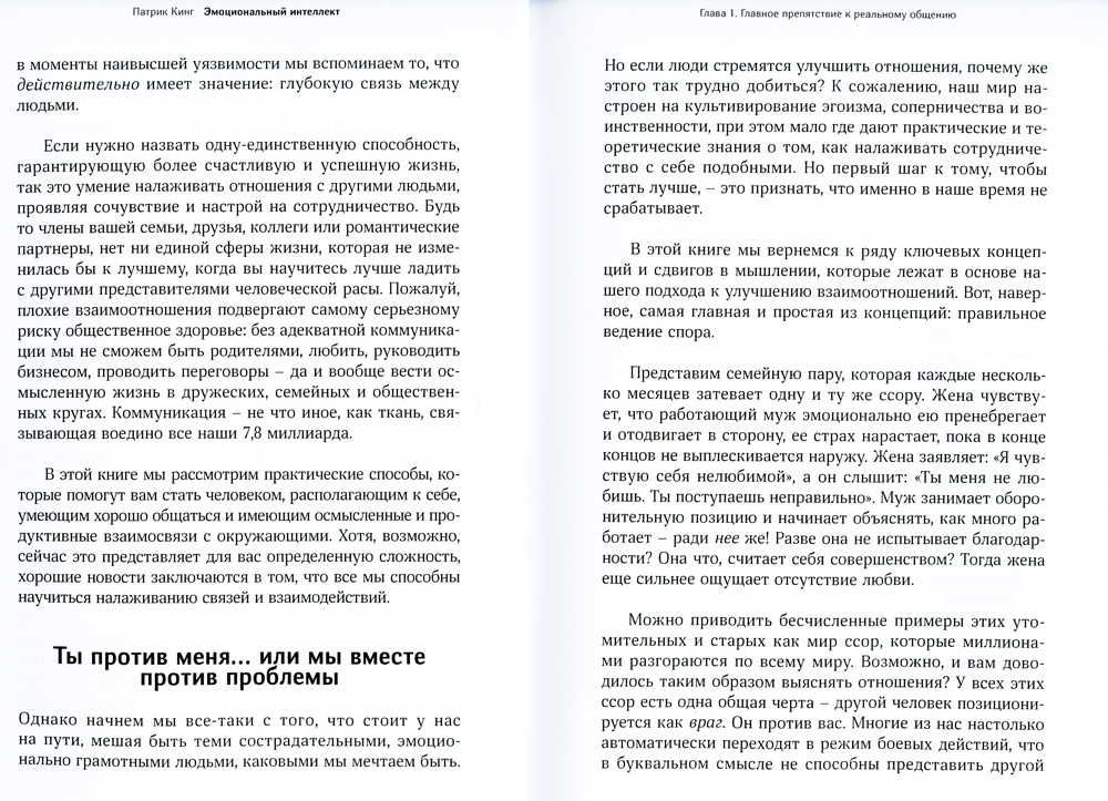 В этой книге вы найдете всесторонний и глубокий анализ человеческого поведения с точки зрения социальной психологии и сможете понять себя и окружающих вас людей. Давайте посмотрим правде в глаза - большинство проблем, с которыми мы сталкиваемся в нашей жизни, связаны не с ситуацией, а с человеком, стоящим перед вами. Будь то родитель, брат или сестра, коллега или даже близкий человек - в общении с ними может возникнуть непонимание. Это разумно и нормально. Но что, если бы вы могли научиться понимать людей, их мотивы и намерения и в конечном счете, как лучше с ними общаться? Это задача Патрика Кинга: основываясь на результатах новейших научных исследований, показать вам «дистиллированный» эмоциональный интеллект, который помогает вам понять, почему люди делают то, что они делают. Эмоциональный интеллект сочетает в себе природный инстинкт человека анализировать свои и чужие потребности с навыками в этой области, которые принесут вам желаемый конечный результат:лучшие отношения, высокую самооценку и уверенность, самопонимание и самодифференциацию, а также общую удовлетворенность и счастье.| Издательство | Библос |