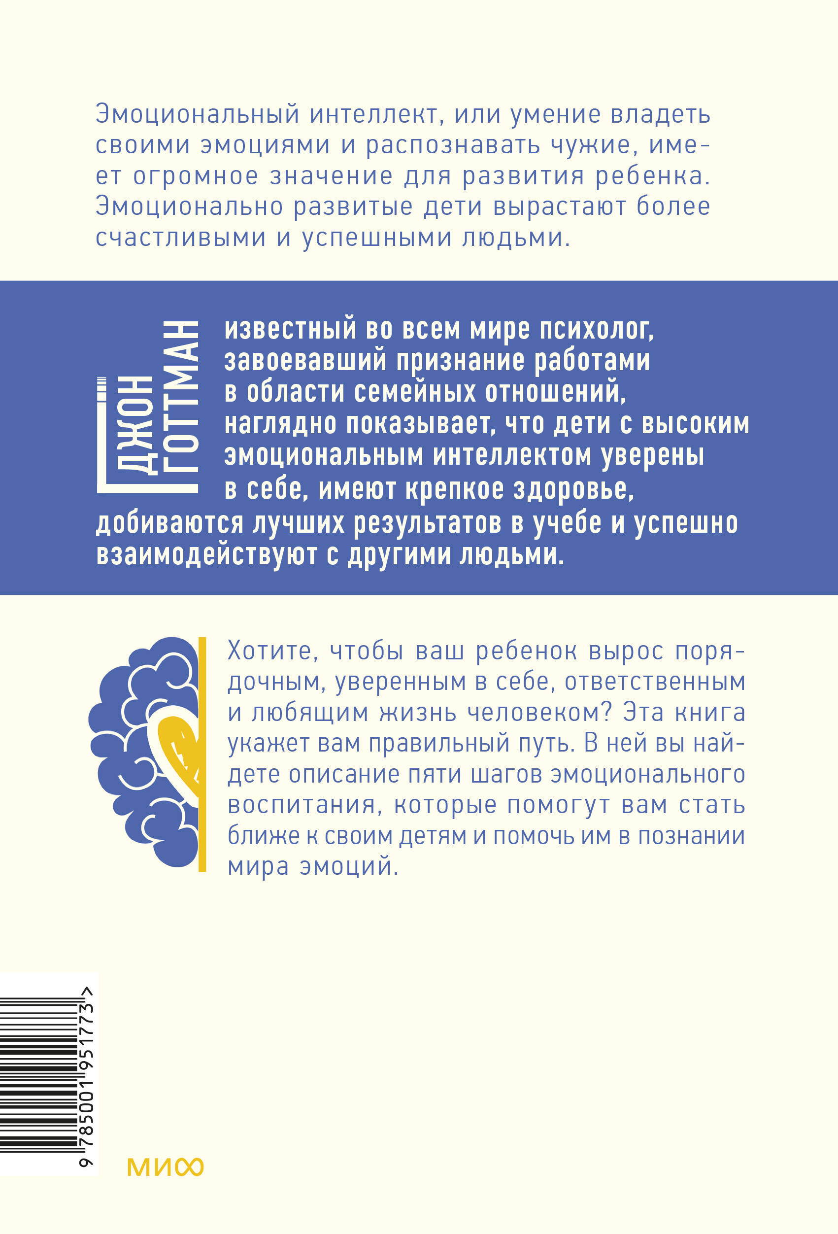 Эта книга о пяти шагах эмоционального воспитания, которые помогут лучше понимать настроение ребенка и мотивы его поведения, позволят обсуждать эмоции на понятном ему языке и научить его справляться с тяжелыми ситуациями и проблемами, а также заложат основу для поддержания близких отношений с ребенком.
