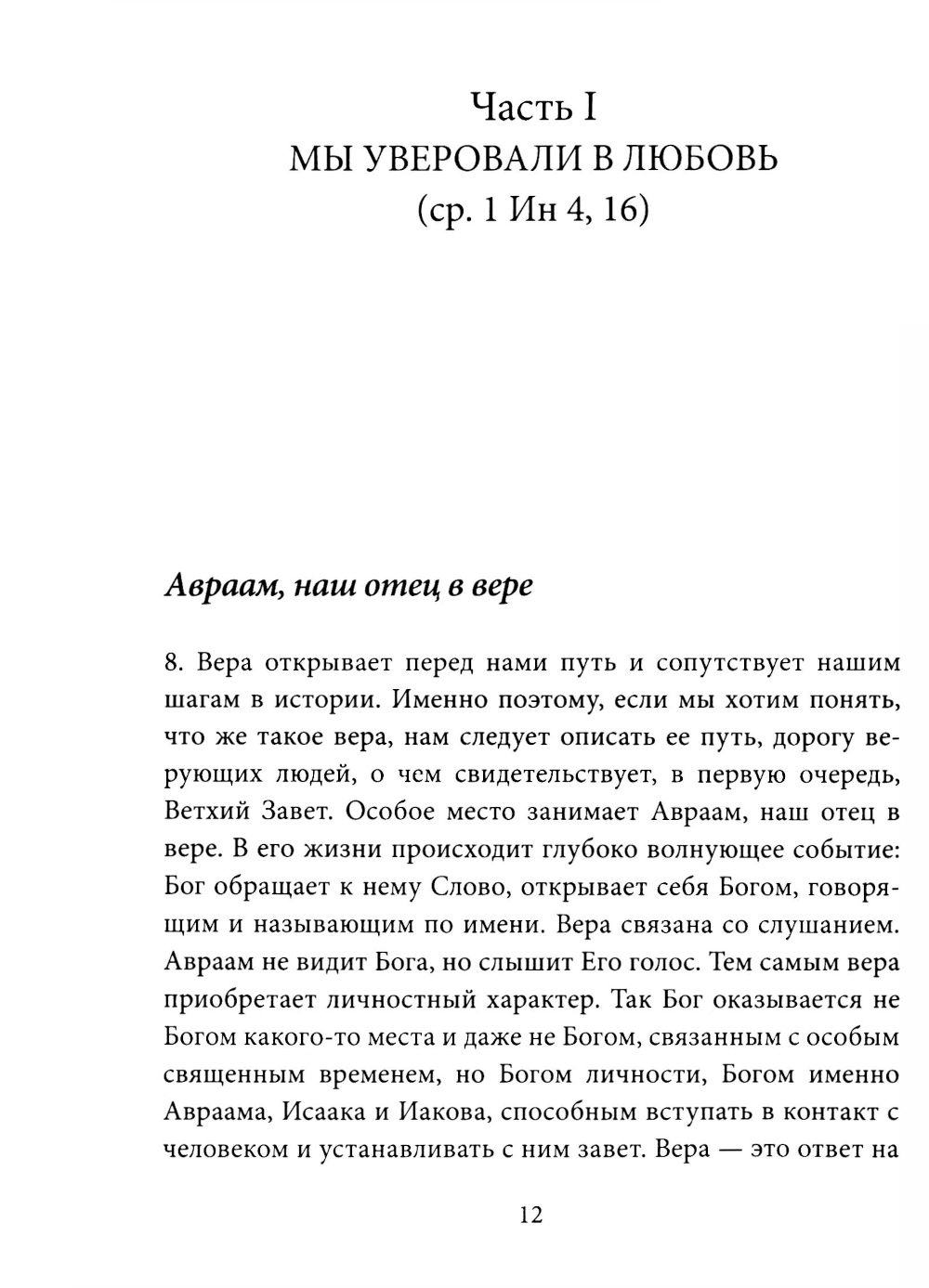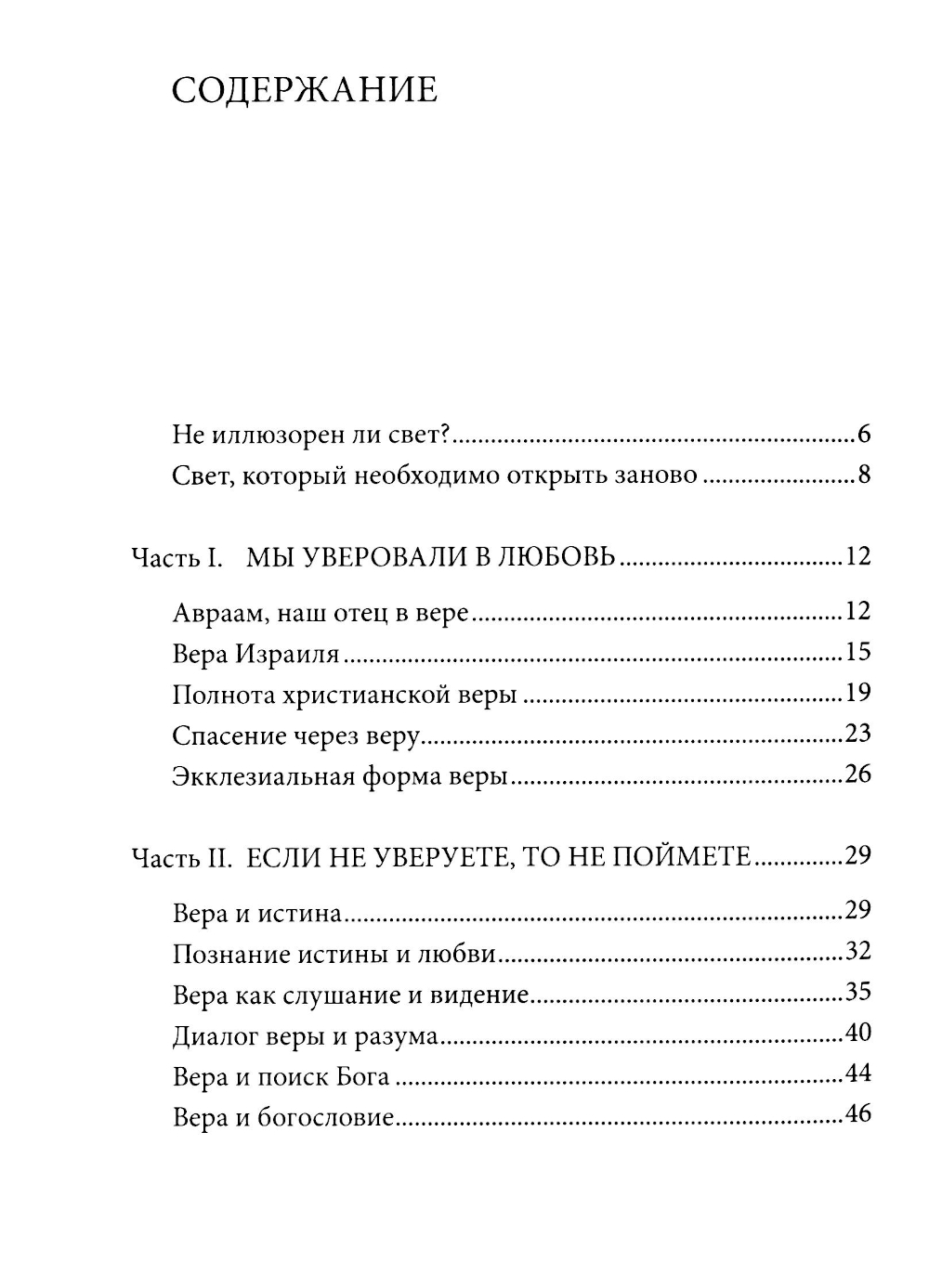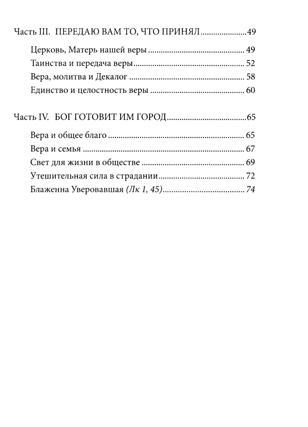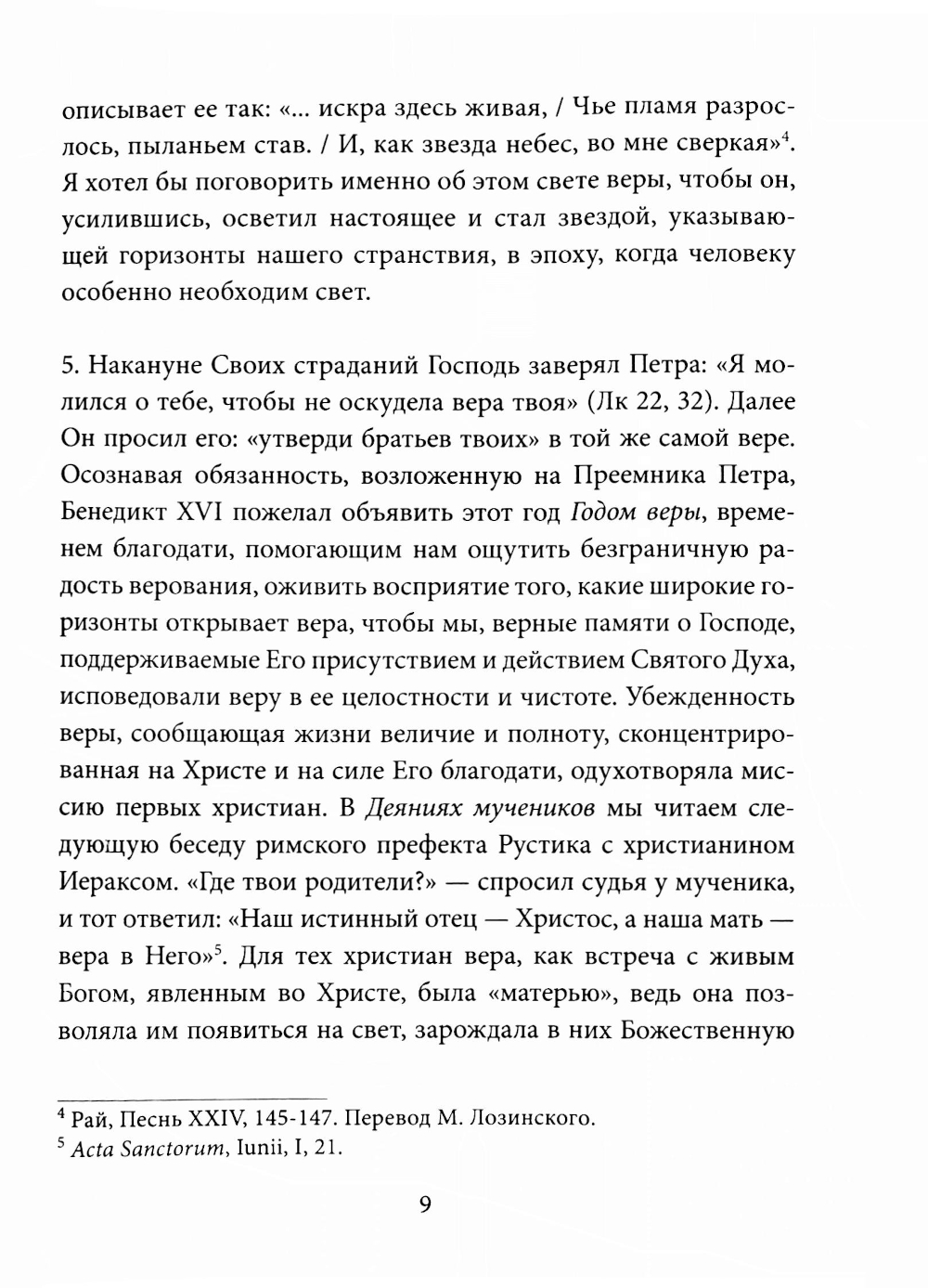 Свет веры - этим словосочетанием Предание Церкви обозначило великий дар, принесенный Иисусом. В Евангелии от Иоанна Он Сам говорит о Себе так: «Я, свет, пришел в мир, чтобы всякий верующий в Меня не оставался во тьме» (Ин 12, 46). А святой Павел говорит следующее: «Бог, повелевший из тьмы воссиять свету, озарил наши сердца» (2 Кор 4, 6). В жаждущем света языческом мире развился культ бога Солнца, Sol invictus, к нему взывали на рассвете. И хотя солнце вновь рождалось каждый день, люди хорошо понимали, что оно неспособно озарить светом все бытие человека. Ведь солнце не освещает всю реальность, его сияние неспособно проникнуть во мрак смерти, туда, где очи человека закрыты для солнечного света. «Нельзя найти ни одного человека, который бы решился умереть за веру в солнце», - утверждает Юстин Мученик.