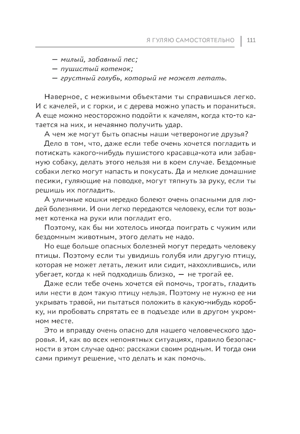 Воспитание навыков безопасного поведения у детей дошкольного и младшего школьного возраста становится для родителей большой проблемой. Как научить ребенка безопасному поведению и не напугать? Объяснить так, чтобы было понятно и интересно? В этой книге содержатся самые важные правила безопасного поведения, которые необходимо донести до каждого ребенка. Как это сделать? В диалоге и в игре, сопровождая их практическими тренировками и побуждая ребенка к самостоятельным выводам. С помощью этой книги вы сможете просто и интересно разобрать с ребенком привычные «можно» и «нельзя» и заложить в детях ту базу, без которой не построить прочный домик безопасности. И этот фундамент - понимание чувства собственного достоинства, личных границ, права на самозащиту и умение говорить «нет». Без этой основы наши дети не будут защищены по-настоящему. Книга предназначена для занятий с детьми старшего дошкольного и младшего школьного возраста в паре «взрослый - ребенок». Содержание книги полностью соответствует Целевому разделу Федеральной образовательной программы дошкольного образования от 25.11.2022.| Издательство | Феникс |