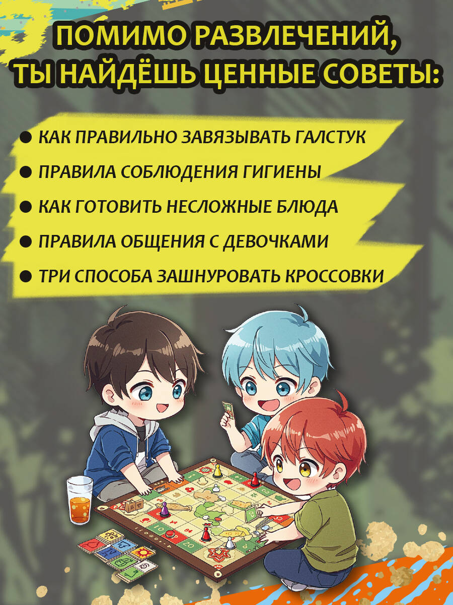 Эта книга - отличный спутник любого мальчишки в его бесконечных приключениях! Тебя ждёт множество идей для весёлого времяпровождения - как наедине с собой, так и в компании друзей. Ведь что может быть интереснее дворовых игр? Или физических опытов, которые можно провести дома? А как насчёт изобретательских задач? Помимо всевозможных приколов, ты найдёшь здесь массу полез- ных советов. Узнаешь, что взять с собой в поход; как приготовить несложное, но вкусное блюдо; а в конце найдёшь тесты, которые могут помочь определиться с будущей профессией. Для среднего школьного возраста.| Издательство | Издательство "АСТ" |