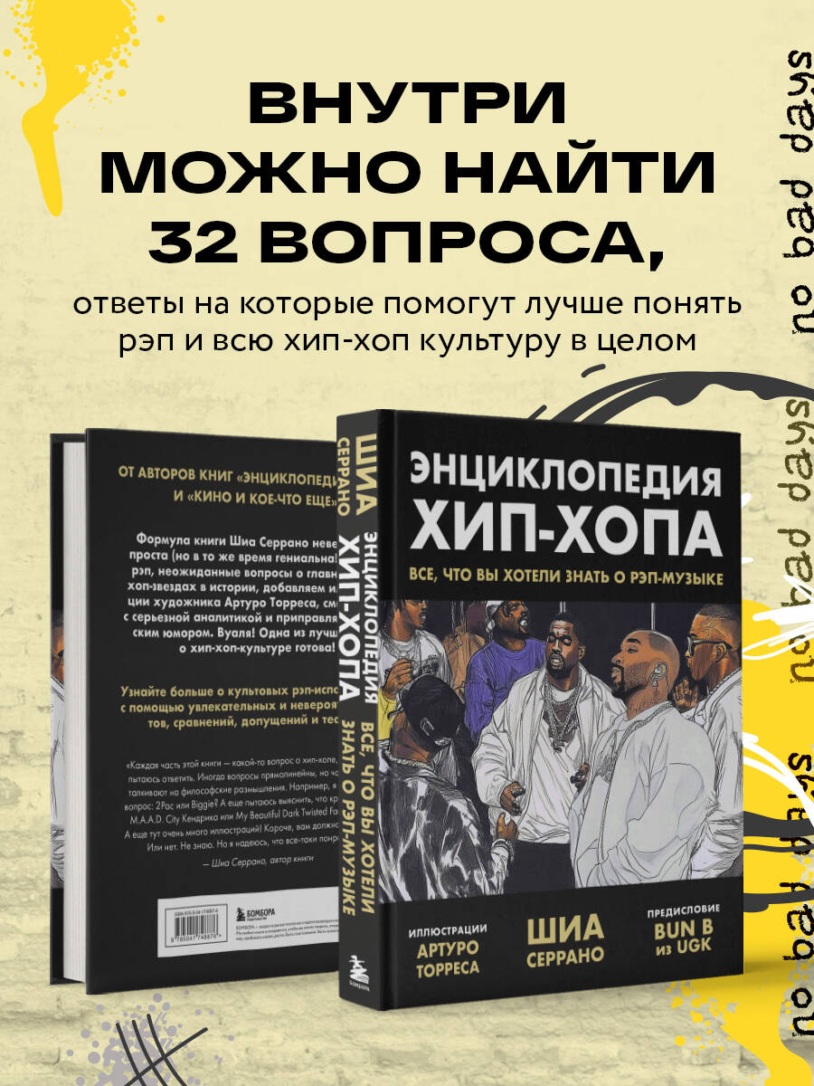 Впервые на русском! Книга от автора бестселлеров «Энциклопедия рэпа» и «Кино и кое-что еще». Шиа Серрано объединил все лучшее, что было в его предыдущих книгах. Формула проста: берем рэп, неожиданные вопросы о главных хип-хоп звездах в истории, добавляем иллюстрации художника Артуро Торреса, смешиваем с серьезной аналитикой и приправляем авторским юмором. Вуаля! Одна из лучших книг о культуре хип-хопа готова. Узнайте больше о Канье Уэсте, Кендрике Ламаре, Jay-z, Тупаке и многих других культовых рэп-исполнителях. Эта подарочная книга сделана на плотной бумаге, которая позволяет лучше передать цвет иллюстраций. Она станет отличным подарком каждому поклоннику рэпа и музыки в целом.| Издательство | ООО "Издательство "Эксмо" |