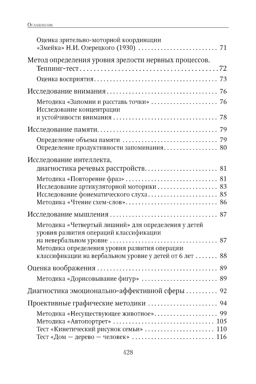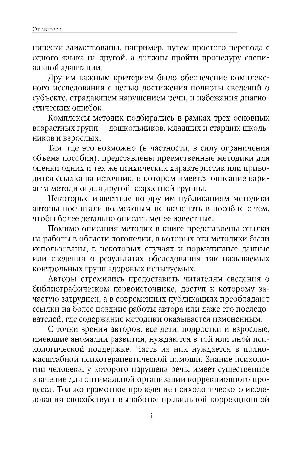 В книге представлен широкий спектр психодиагностических методик (более 100), направленных на изучение психических процессов, поведенческой, когнитивной и эмоционально-личностной сфер психики. При отборе предпочтение отдавалось методикам, которые являются результатом обобщения многолетнего опыта научных исследований и практического их применения. Психодиагностические методики помогут логопеду различить речевые расстройства по их происхождению, а также уточнить механизмы имеющихся у ребенка, подростка или взрослого психологических нарушений. Пособие предназначено логопедам, дефектологам, психологам и студентам.| Издательство | Каро |