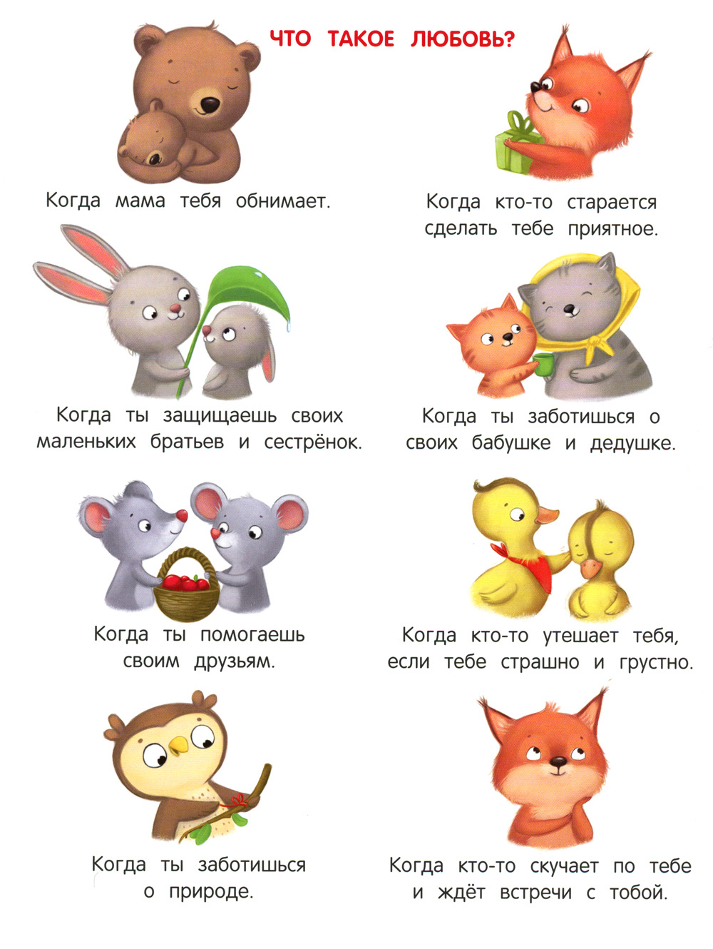 Проявлять любовь, дарить любовь, окружать любовью - всему этому можно учиться с малых лет и продолжать в течение всей жизни. Сказки о зверятах, стихи и задания помогут малышу понять значение слова «любовь». Расскажут, как заботиться о близких, как строить отношения с родными и сверстниками, как стать чутким и заботливым сыном или дочерью, братом или сестрой, другом или подругой, как любить природу, братьев наших меньших и весь наш мир.| Издательство | Феникс |