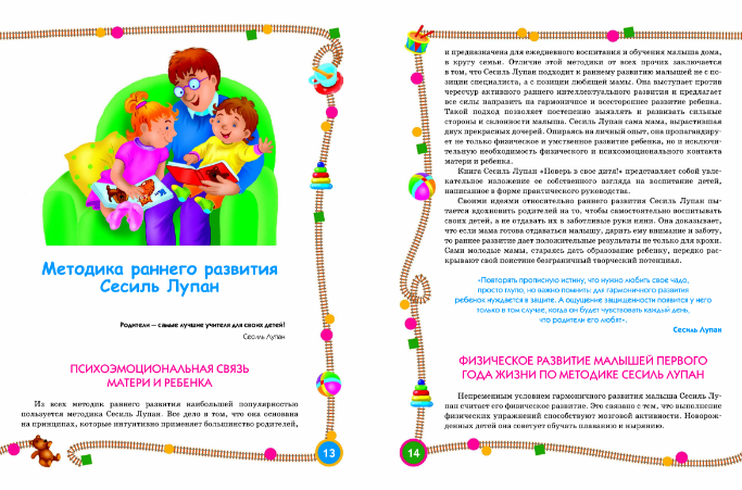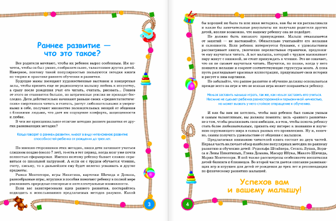 Как и когда начинать учить малыша, что бы привлечь ему интерес к познанию и изучению окружающего мира? как правильно воспитывать и развивать детей, что бы они росли умными, сообразительными, талантливыми и счастливыми? Эти вопросы волнуют всех родителей. Предлагаем вашему вниманию книга содержит обзор наиболее популярных методик раннего развития и обучения детей, а так же описание развивающих игр и игрушек, рекомендации по физическому развитию малышей. Успехов вам и вашему малышу!