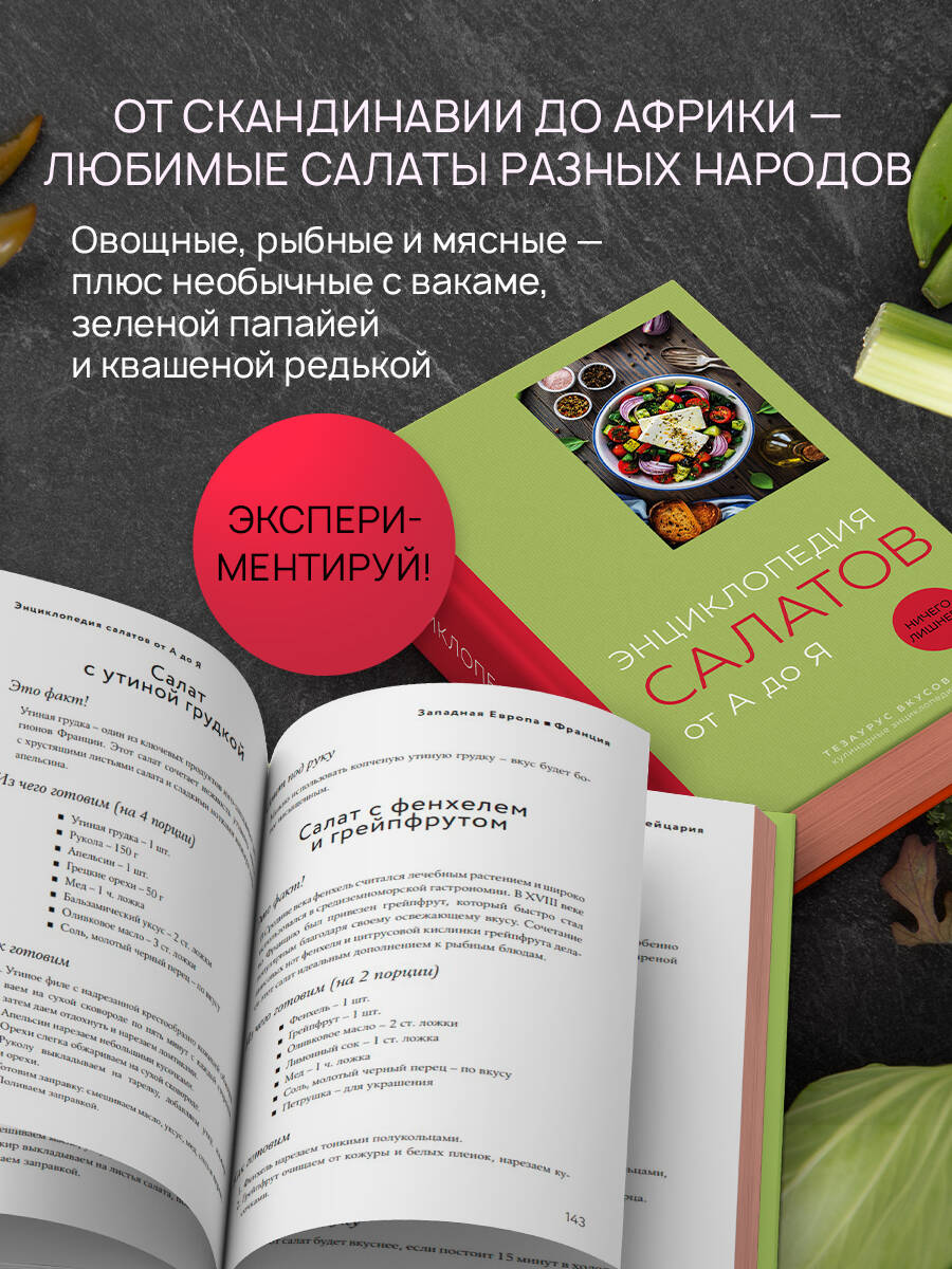 Аннотация: Энциклопедия салатов от А до Я (закрашенный обрез)