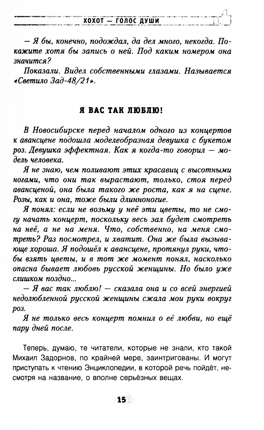 Представляем вашему вниманию новую книгу горячо любимого жителями России писателя-сатирика, драматурга, юмориста - Михаила Задорнова. В «Энциклопедии всенародной глупости» речь пойдёт, несмотря на название, о вполне серьёзных вещах. Понаблюдайте, над чем смеются ваши приятели, коллеги на работе, и вы многое о них узнаете: что им дорого, что их тревожит, чем они живут и чего не понимают... Ведь хохот - это голос души. К тому же не секрет, что благодаря шутке может разрешиться давний конфликт, а может и возникнуть новый. Поэтому, разделив книгу на два полюса: «Они» и «Мы», автор хотел утвердить читателя в мысли, что нет ничего благотворнее умения человека, будь он русский или американец, в первую очередь смеяться над собой! А уж потом... Авторство этой книги Михаил Николаевич разделяет со всеми своими читателями и зрителями, теми, кто присылает на его электронную почту свои забавные случаи из собственного опыта, и не исключено, что кто-то увидит в этой книге историю из своей жизни. Приятного чтения!| Издательство | Центрполиграф |