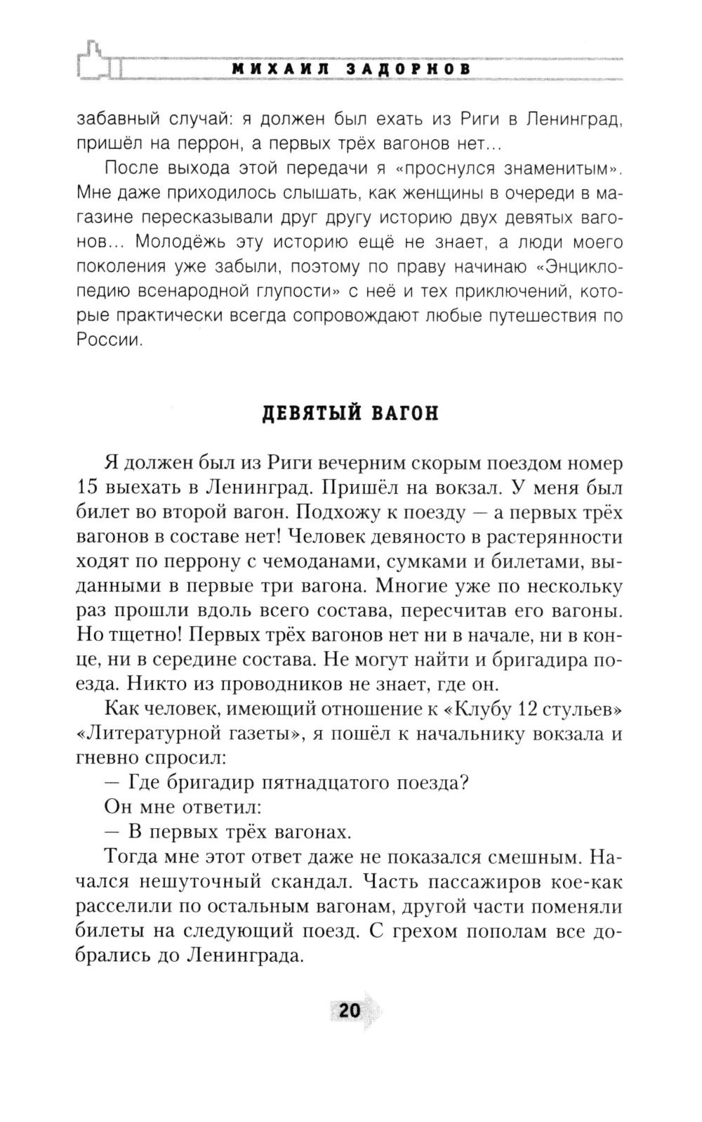 Представляем вашему вниманию новую книгу горячо любимого жителями России писателя-сатирика, драматурга, юмориста - Михаила Задорнова. В «Энциклопедии всенародной глупости» речь пойдёт, несмотря на название, о вполне серьёзных вещах. Понаблюдайте, над чем смеются ваши приятели, коллеги на работе, и вы многое о них узнаете: что им дорого, что их тревожит, чем они живут и чего не понимают... Ведь хохот - это голос души. К тому же не секрет, что благодаря шутке может разрешиться давний конфликт, а может и возникнуть новый. Поэтому, разделив книгу на два полюса: «Они» и «Мы», автор хотел утвердить читателя в мысли, что нет ничего благотворнее умения человека, будь он русский или американец, в первую очередь смеяться над собой! А уж потом... Авторство этой книги Михаил Николаевич разделяет со всеми своими читателями и зрителями, теми, кто присылает на его электронную почту свои забавные случаи из собственного опыта, и не исключено, что кто-то увидит в этой книге историю из своей жизни.