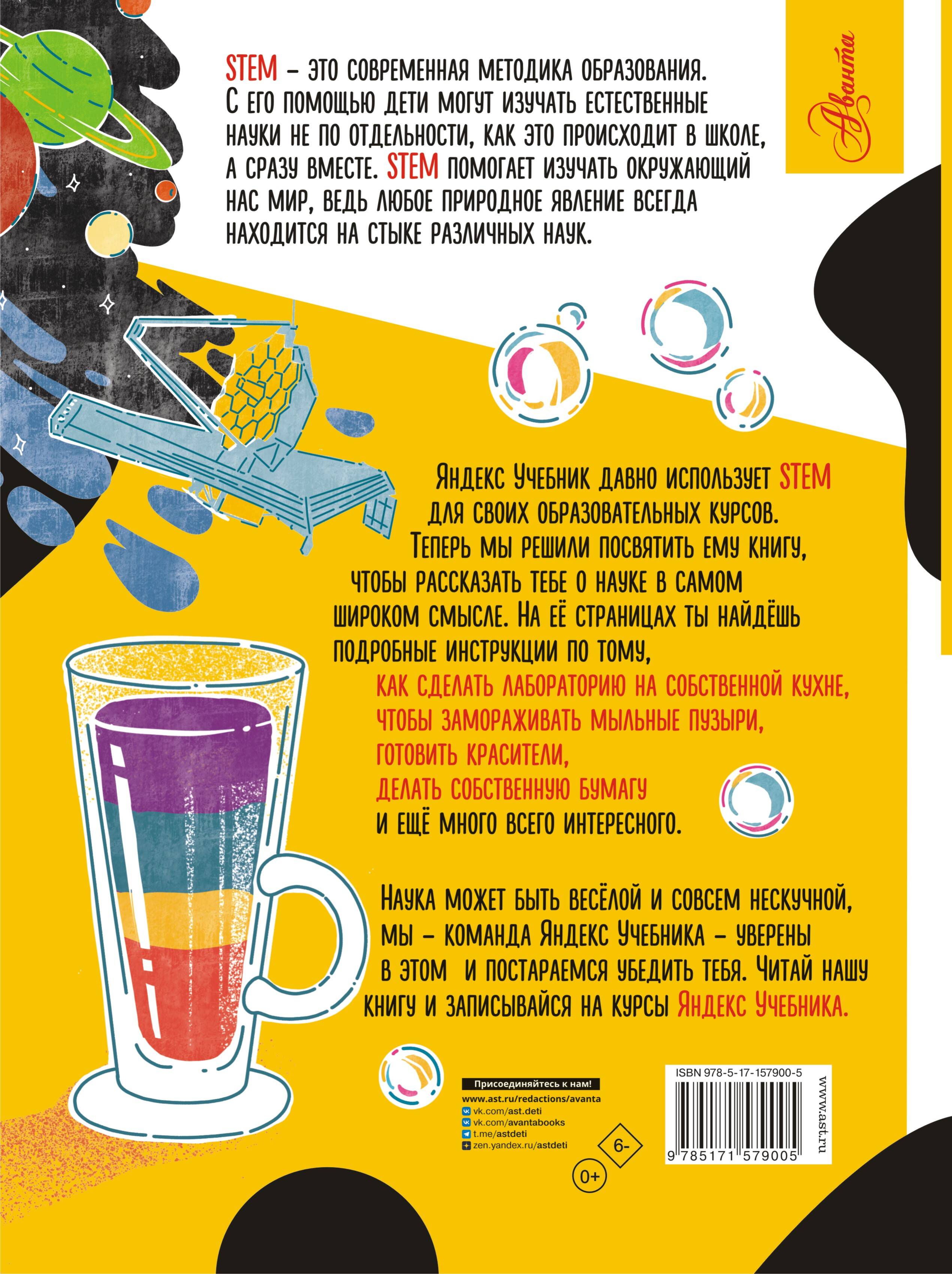 STEM - это современная образовательная методика. Она объединяет естественные науки, делает учёбу интересной и активной. Поэтому эта книга понравится всем, кто любит науку в самом широком смысле, любит задавать самые разные вопросы о природе. Она основана на курсе "Окружающий мир" от Яндекс Учебника. В ней ты найдёшь инструкции по тому, как замораживать мыльные пузыри, сделать собственную бумагу и вырастить кристаллы дома.| Издательство | Издательство "АСТ" |