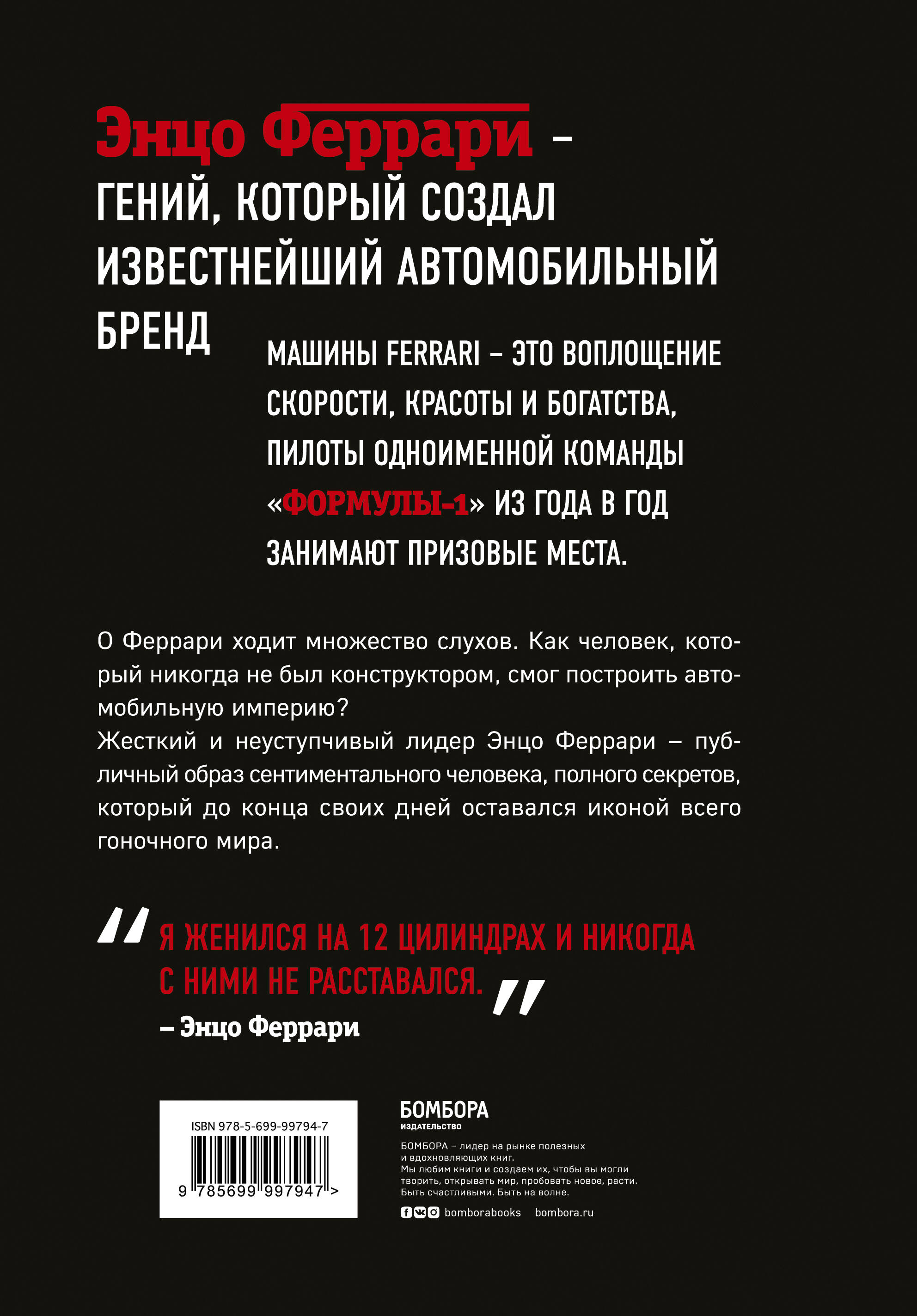 На основе многолетних исследований автор составил настолько точный и бесстрастный портрет Энцо, насколько это возможно. Некоторые факты из книги могут оттолкнуть фанатов Ferrari, считающих создателя компании полубогом машиностроения. Однако жесткий и неуступчивый лидер Энцо Феррари - лишь публичный образ сентиментального человека, полного секретов.| Издательство | ООО "Издательство "Эксмо" |