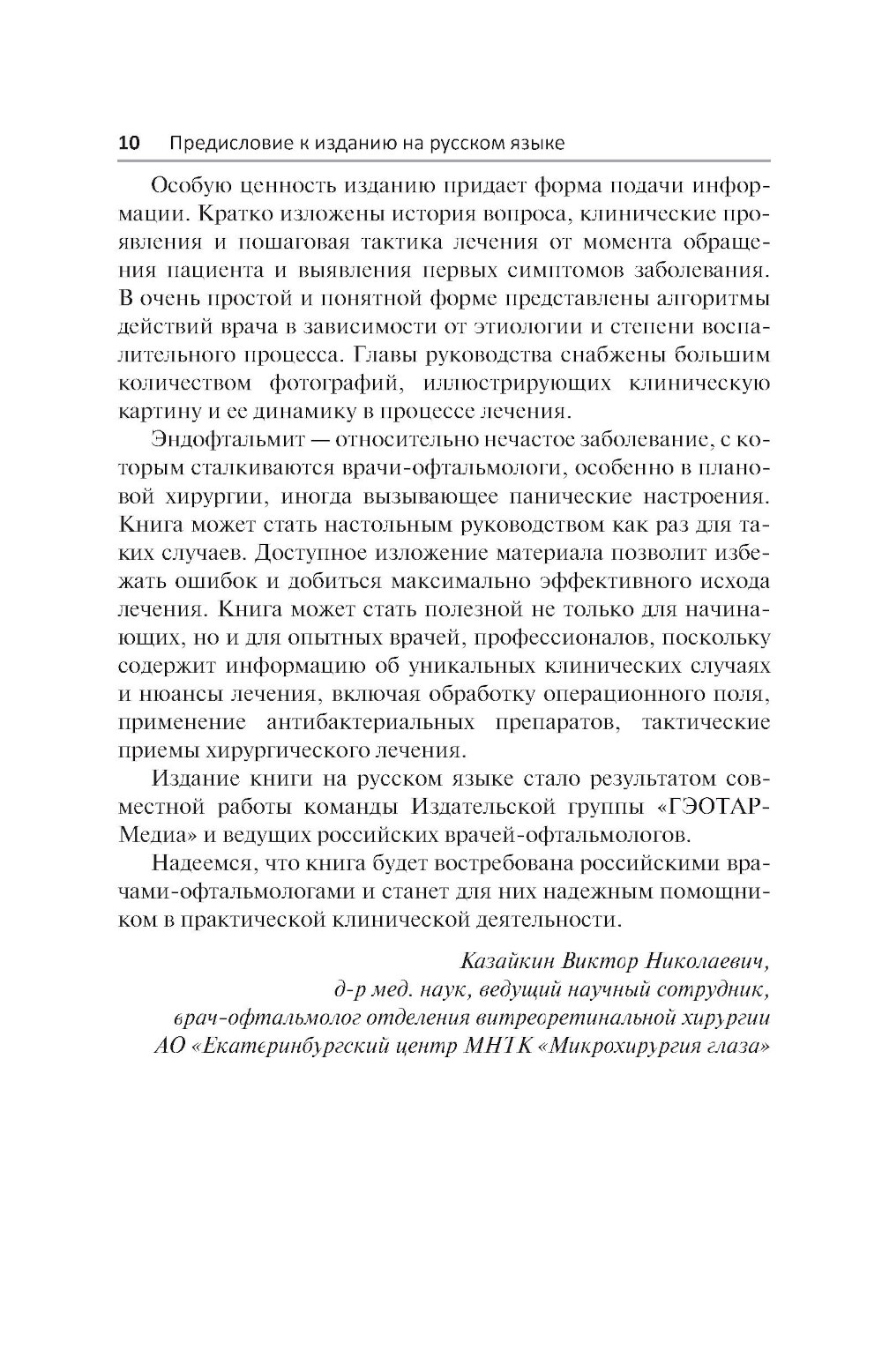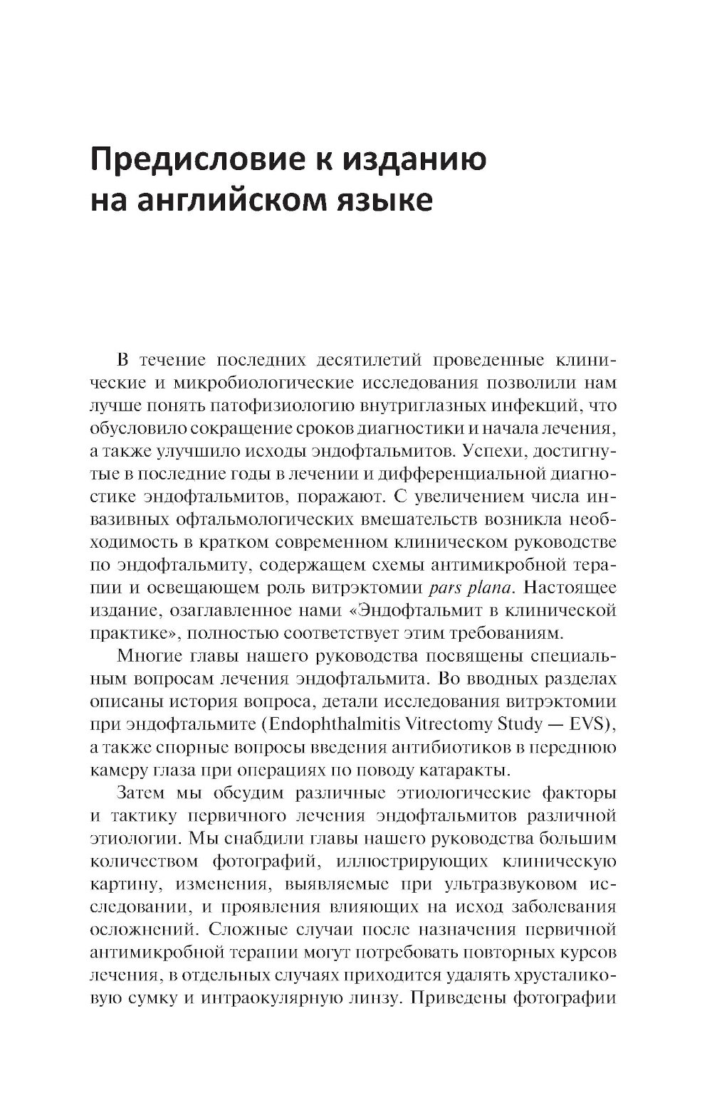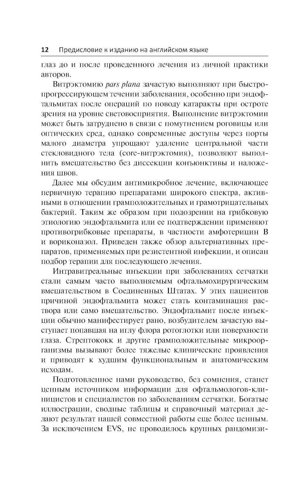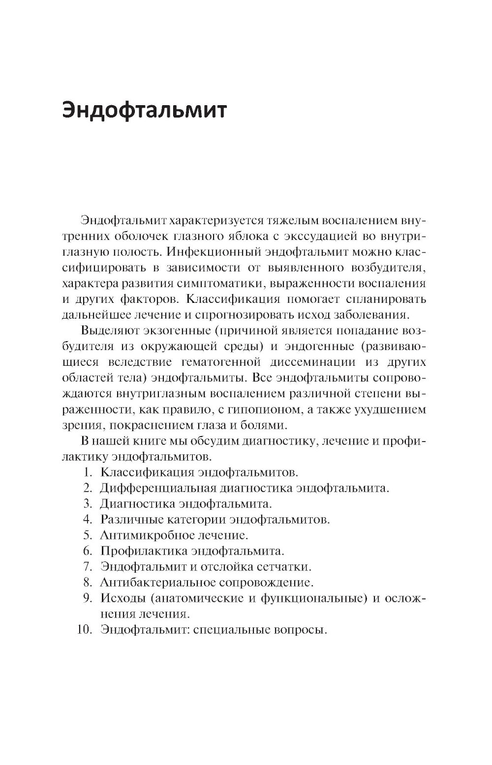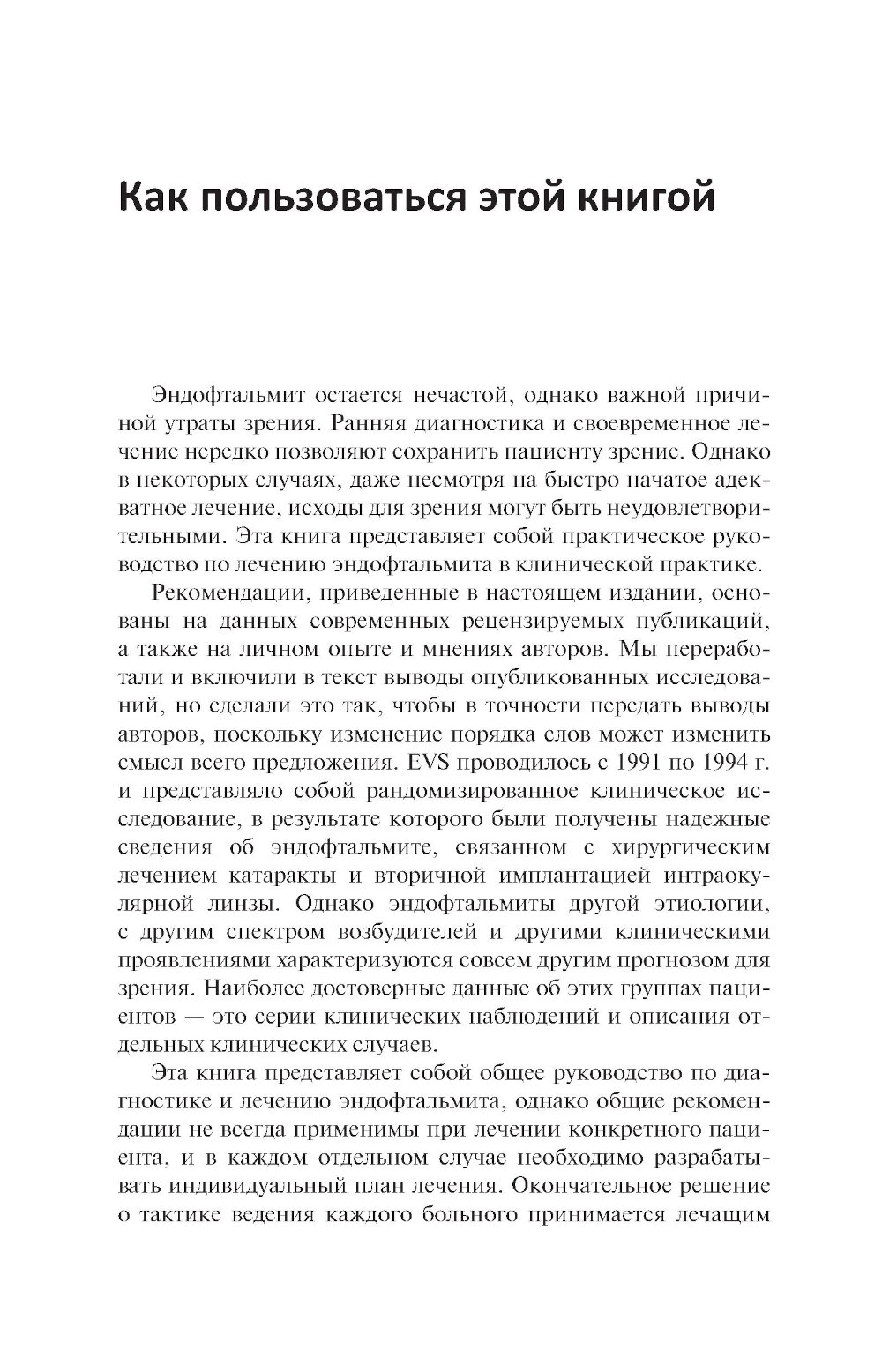 В практическом руководстве представлены основные сведения о клинической диагностике и лечении эндофтальмита. В краткой форме изложены этиология, патогенез, клинические проявления, пошаговая тактика и алгоритмы лечения от момента обращения пациента и выявления первых симптомов заболевания. Подробно рассмотрены особенности применения витрэктомии pars plana, антибактериальных препаратов, методы микробиологического исследования, профилактика, анатомические и функциональные исходы и осложнения лечения. Издание иллюстрировано большим количеством фотографий, наглядно демонстрирующих клиническую картину и ее динамику в процессе лечения. Содержит сводные таблицы дозировок и способы введения традиционных противомикробных средств, данные о микробной резистентности и альтернативные схемы лечения. Предназначено врачам-офтальмологам.