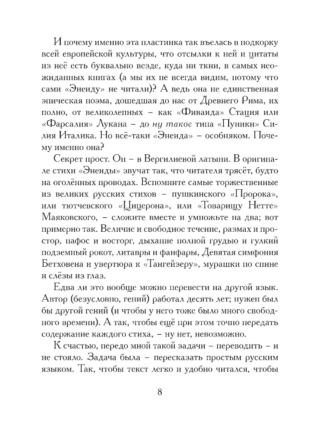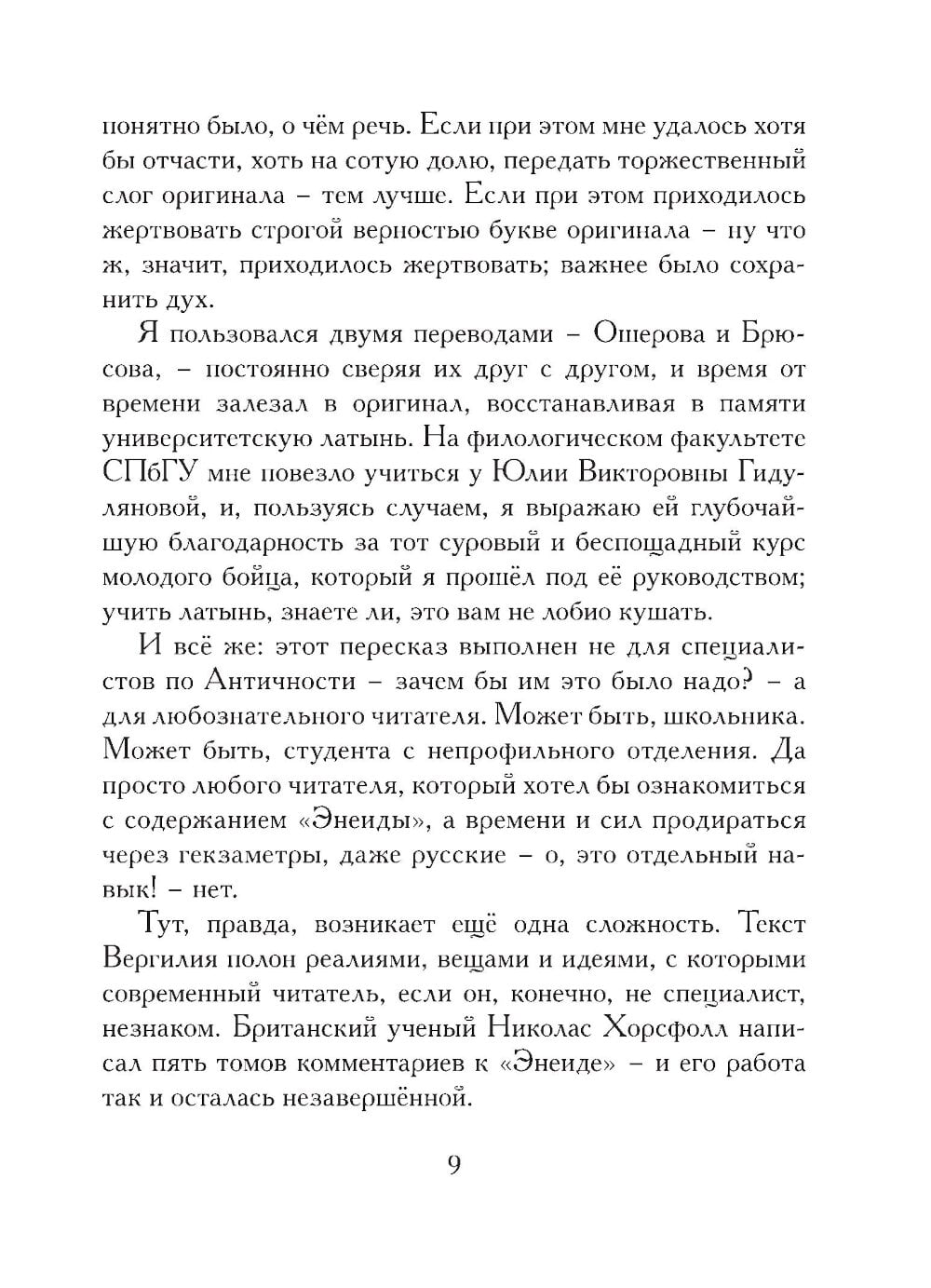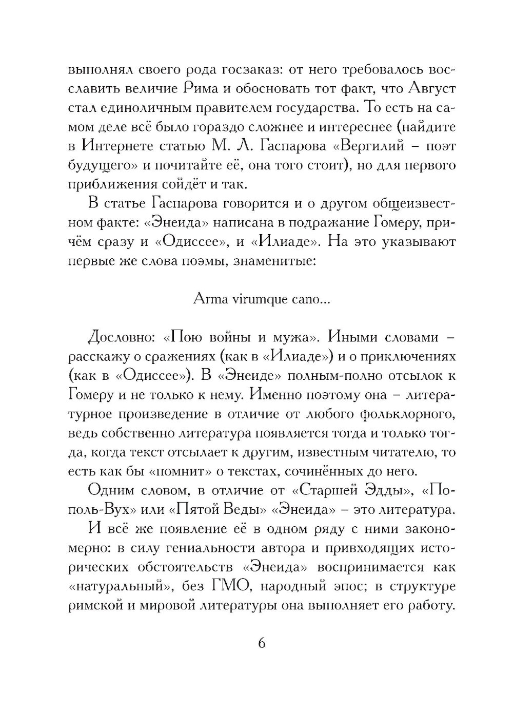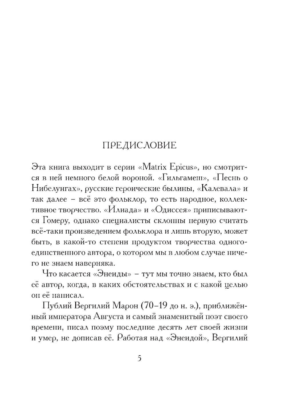 «Энеида» - главнейшее литературное достояние Римской империи. Падение Трои, история любви Энея и Дидоны, путешествие троянцев по полному опасных чудовищ Средиземному морю, посещение героем царства мёртвых, эпохальные битвы армий, распри коварных богов, картины будущего величия Рима и многое, многое другое - всё это составляет невиданное по размаху эпическое полотно, равного которому не выходило из-под пера поэта в Античности. «Энеида» не только заложила стандарты эпического повествования для римской литературы - она стала одним из краеугольных камней, на которых в последующие века выстроится величественное здание европейской литературы. Настоящее издание предлагает читателю полный прозаический пересказ великой поэмы Вергилия, выполненный писателем Вадимом Левенталем.