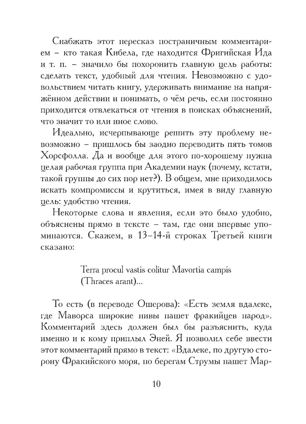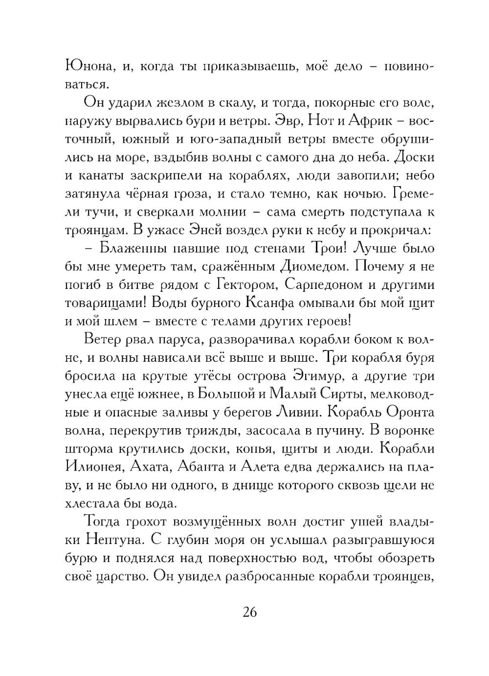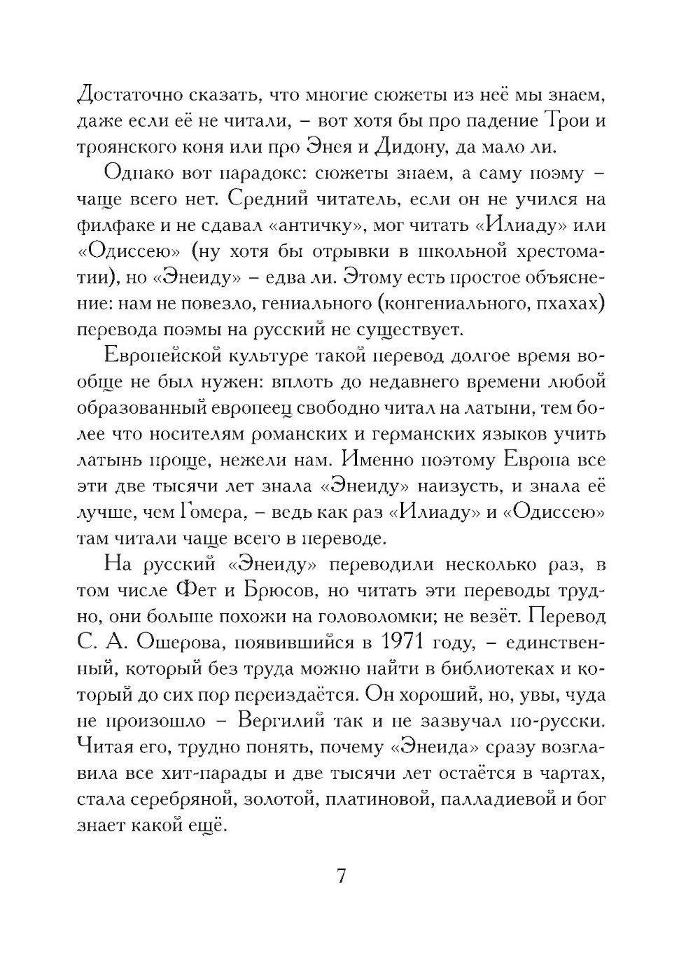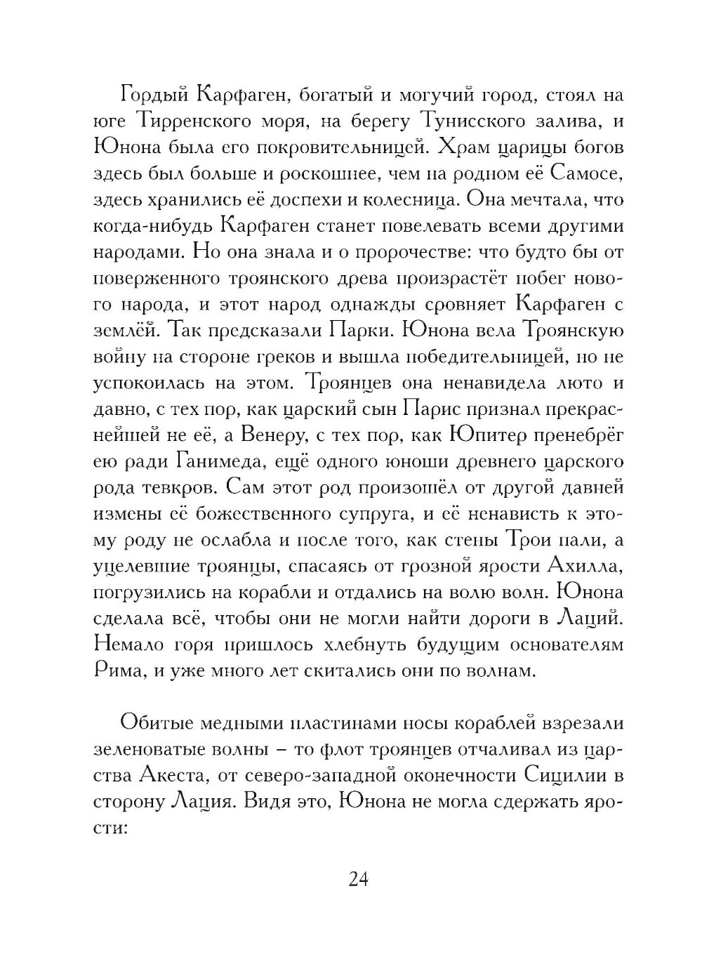 «Энеида» - главнейшее литературное достояние Римской империи. Падение Трои, история любви Энея и Дидоны, путешествие троянцев по полному опасных чудовищ Средиземному морю, посещение героем царства мёртвых, эпохальные битвы армий, распри коварных богов, картины будущего величия Рима и многое, многое другое - всё это составляет невиданное по размаху эпическое полотно, равного которому не выходило из-под пера поэта в Античности. «Энеида» не только заложила стандарты эпического повествования для римской литературы - она стала одним из краеугольных камней, на которых в последующие века выстроится величественное здание европейской литературы. Настоящее издание предлагает читателю полный прозаический пересказ великой поэмы Вергилия, выполненный писателем Вадимом Левенталем.